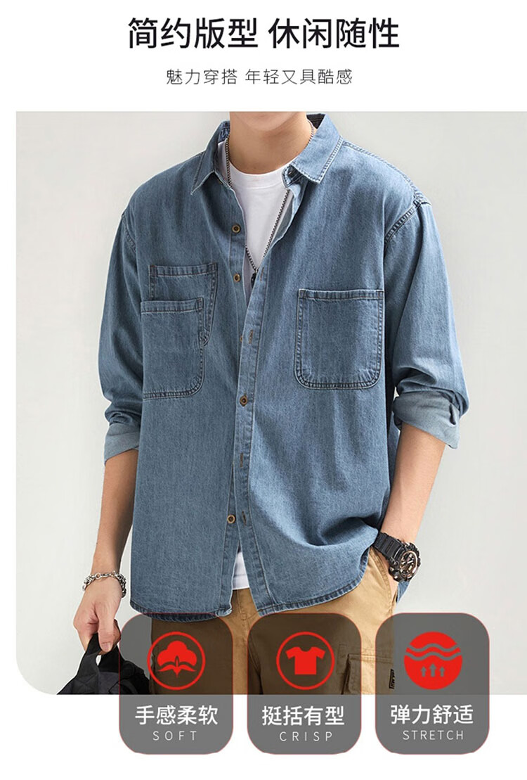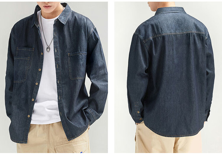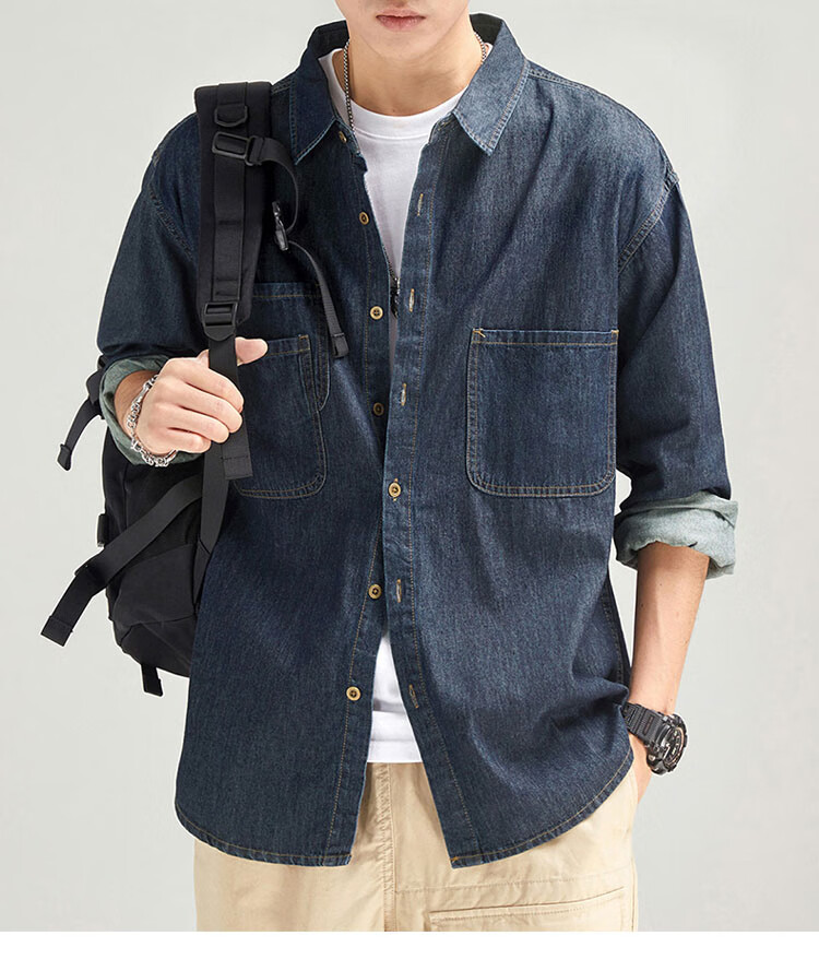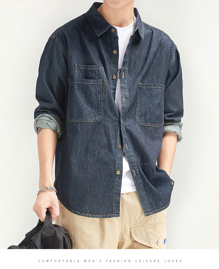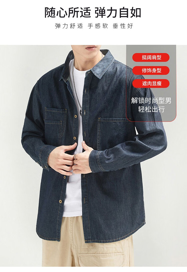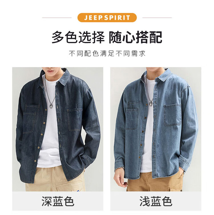 JEEP SPIRIT Jeep denim shirt men's autumn and winter American workwear retro jacket men's long-sleeved shirt men's dark blue XL