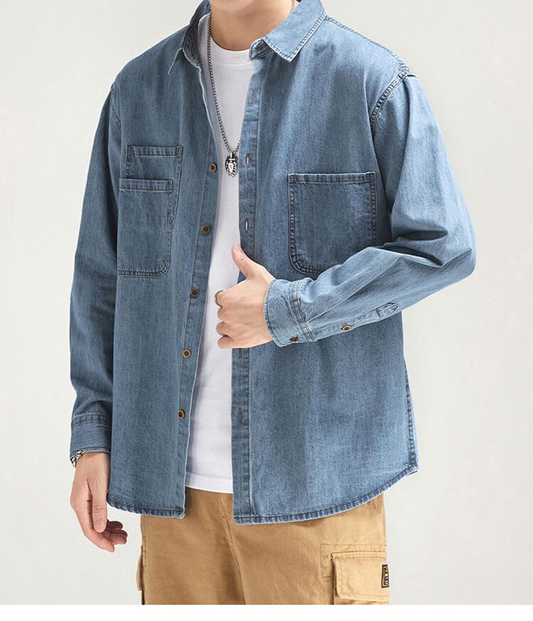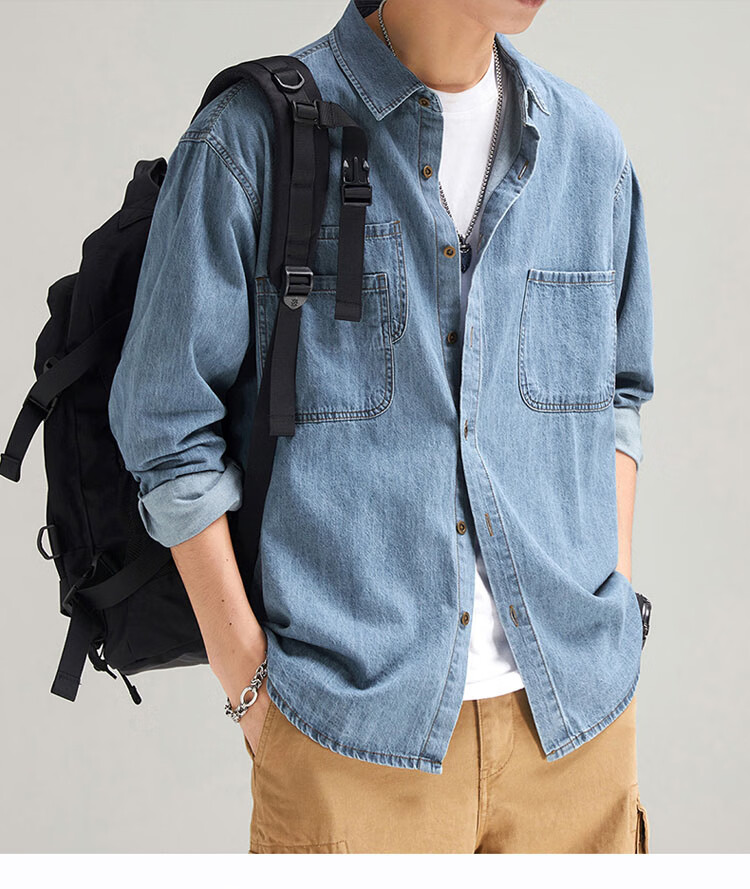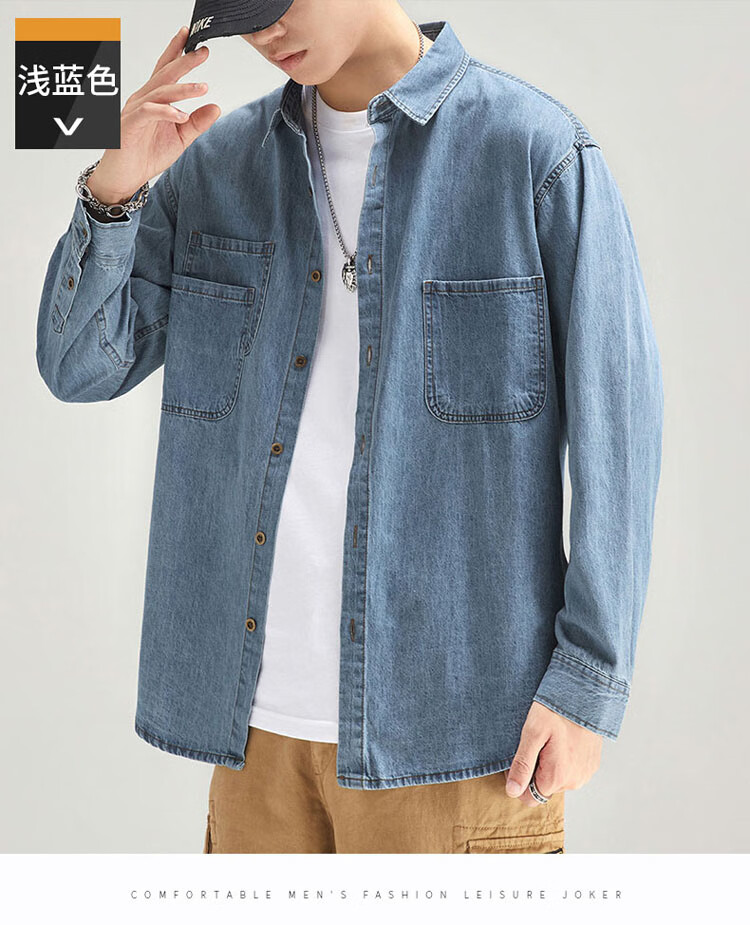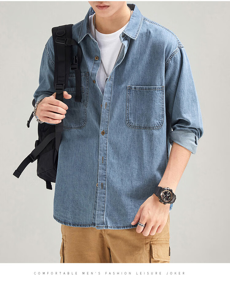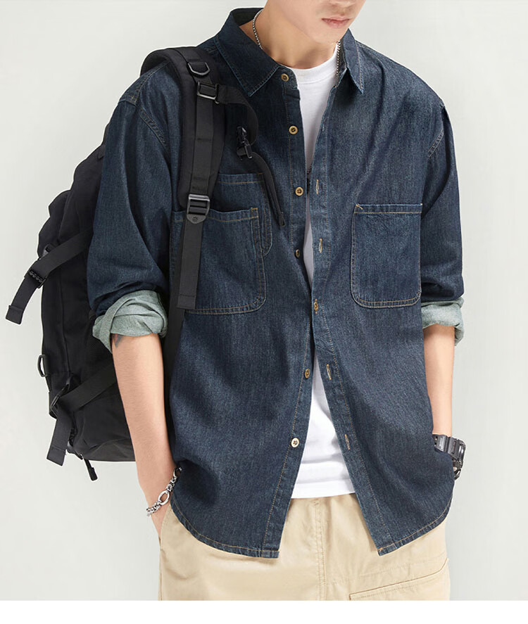 JEEP SPIRIT Jeep denim shirt men's autumn and winter American workwear retro jacket men's long-sleeved shirt men's dark blue XL