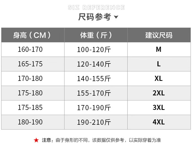 China (cm) 165 / 88-90 170 / 96-98 175 / 108-110 180 / 118-122 185 / 126-130