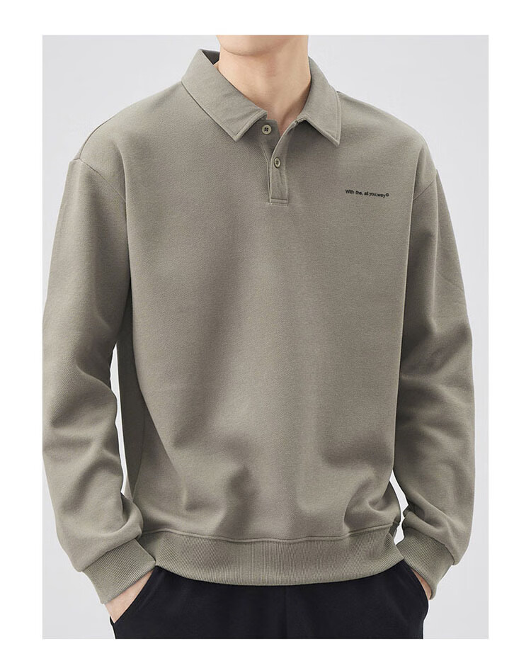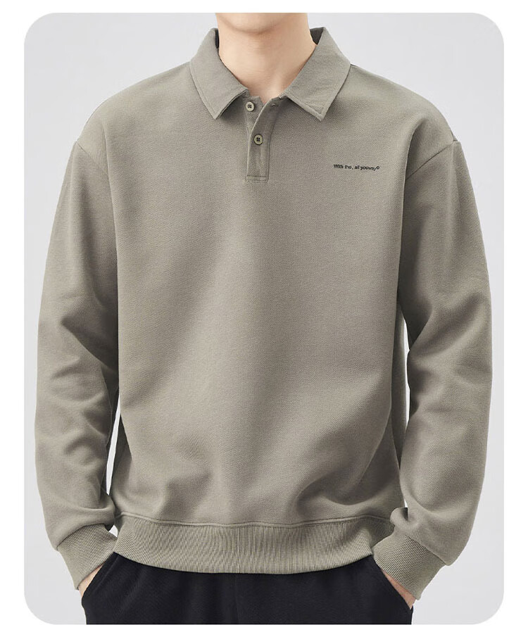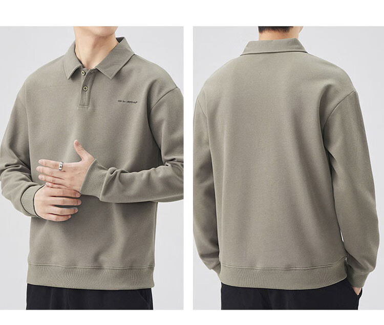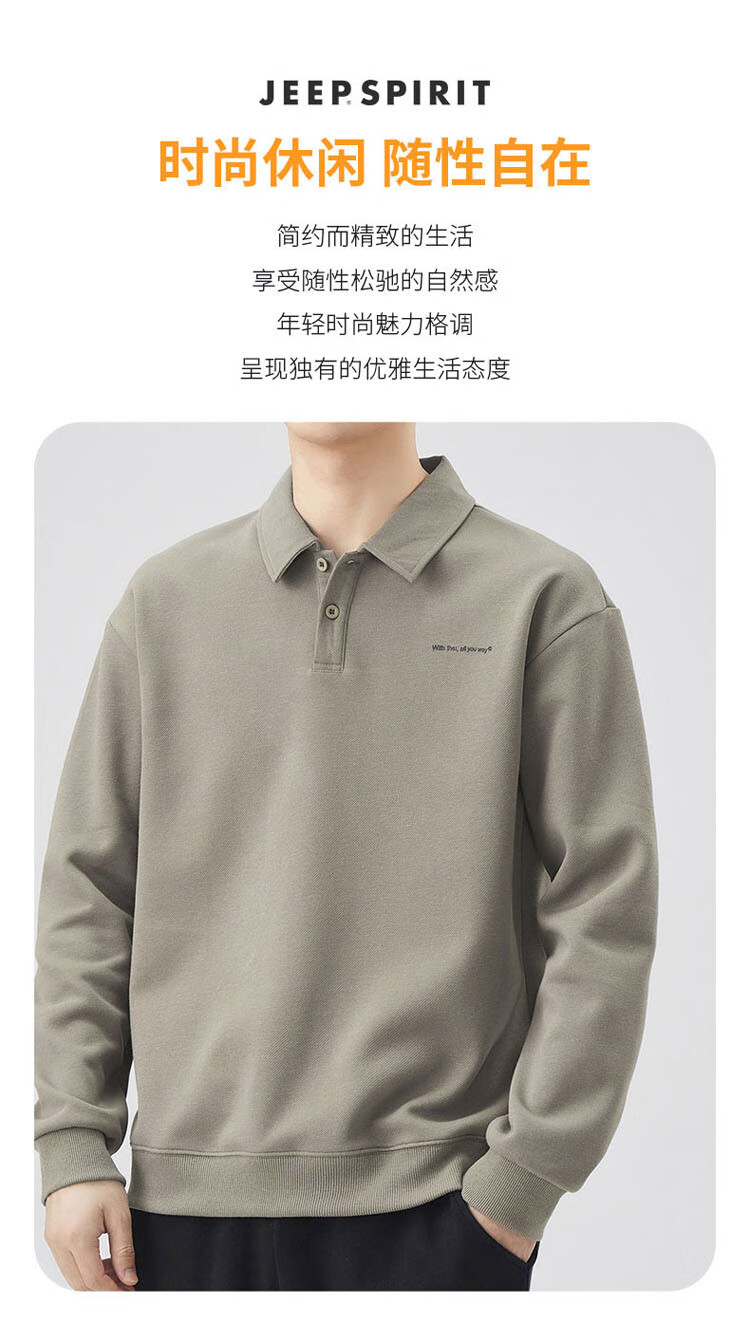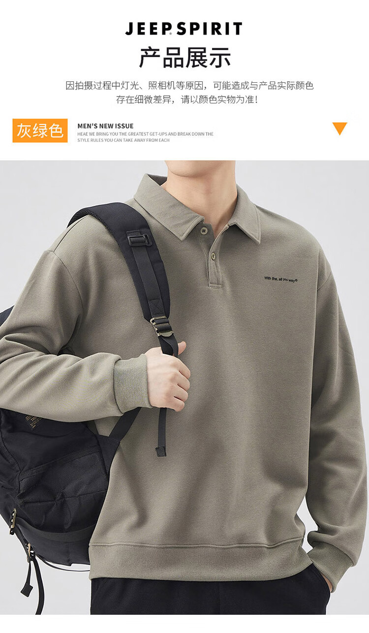 JEEP SPIRIT吉普POLO衫男士卫衣秋冬季宽松长袖翻领t恤衫上衣男 灰绿 XL
