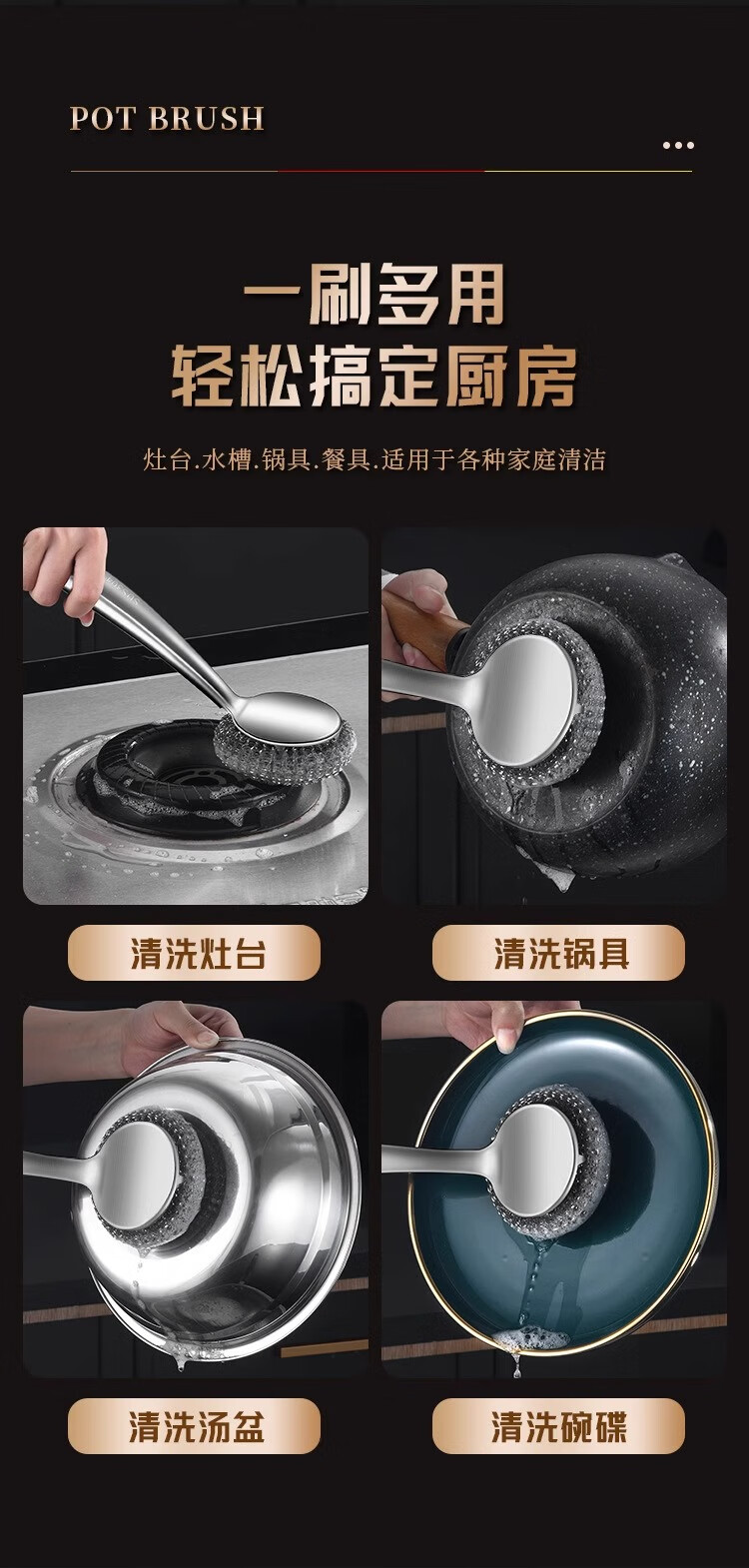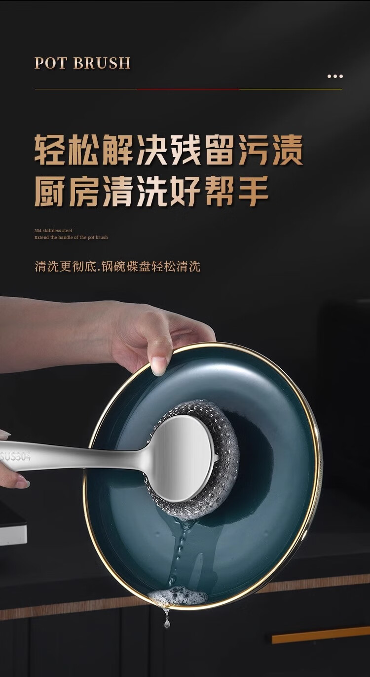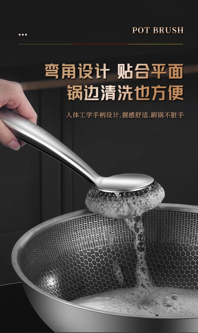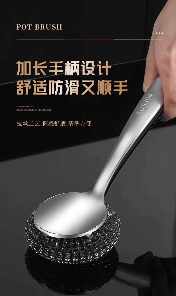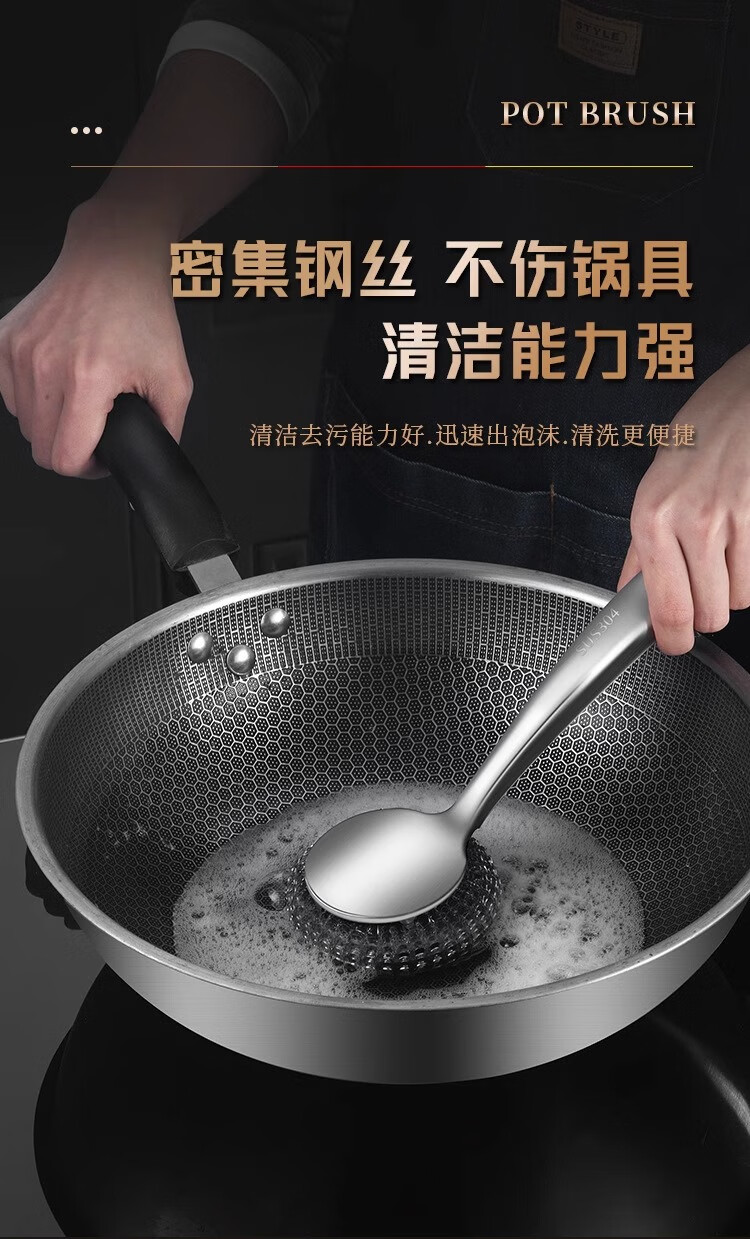 家の物语日本304刷锅神器不锈钢锅刷厨房专用洗锅刷子钢丝球长柄清洁刷