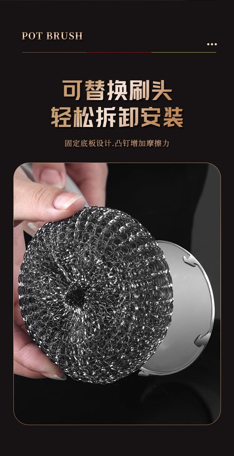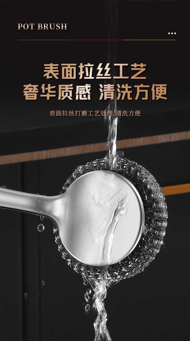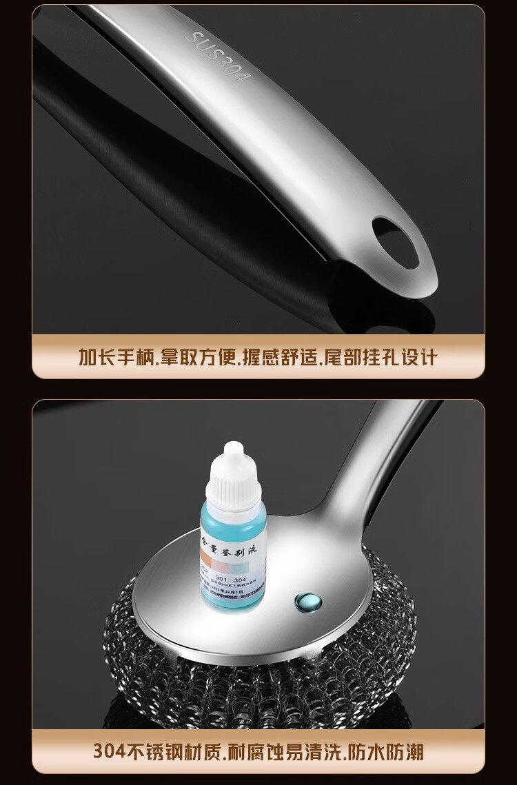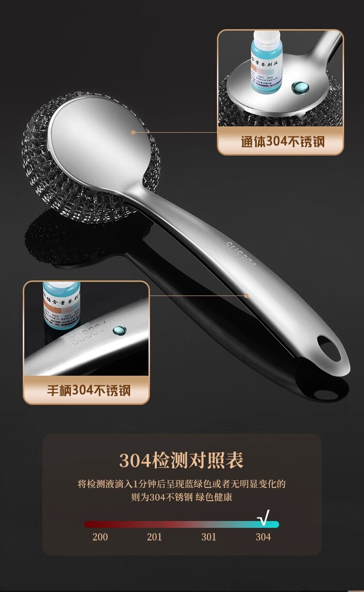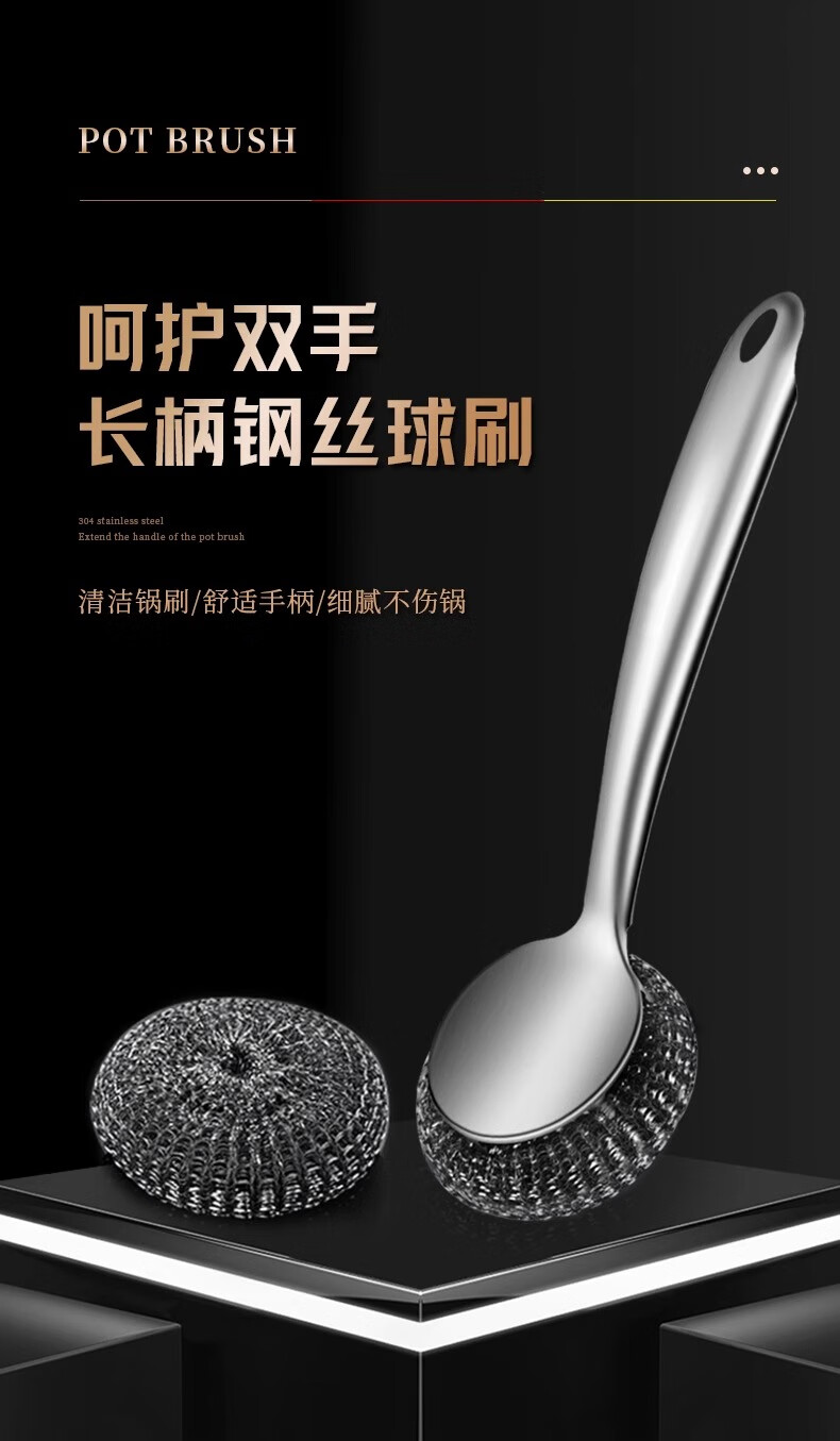 家の物语日本304刷锅神器不锈钢锅刷厨房专用洗锅刷子钢丝球长柄清洁刷