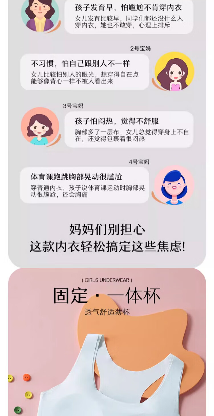 古今(GUJIN)2件无痕女童内衣青春发育期二阶段10一14岁少女生文胸初中小学生