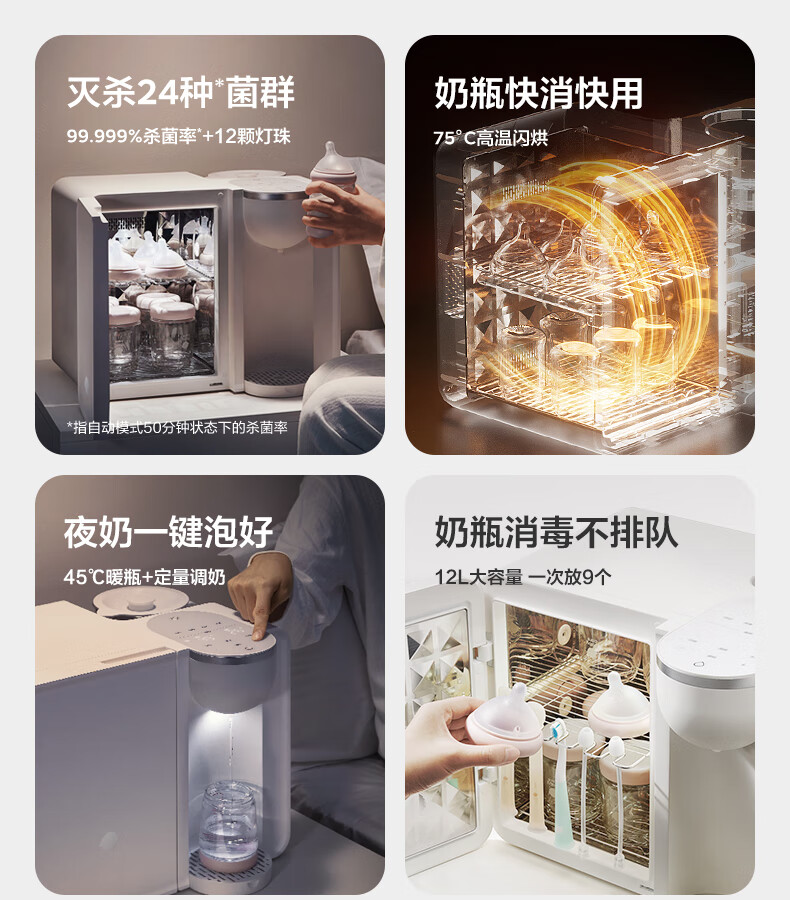 babycare消毒柜 婴儿恒温壶冲奶泡奶多合一奶瓶消毒烘干一体机喂养台