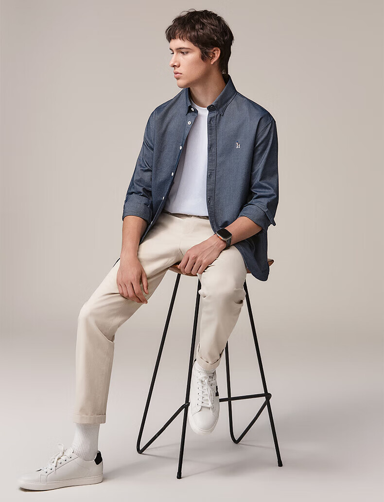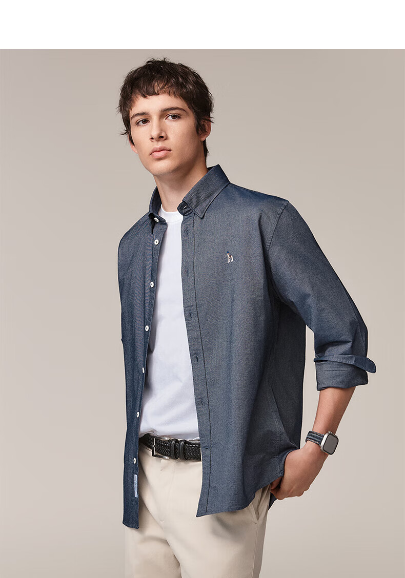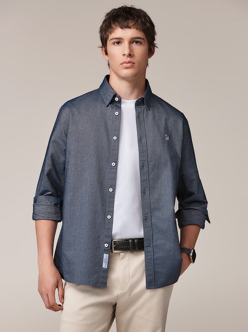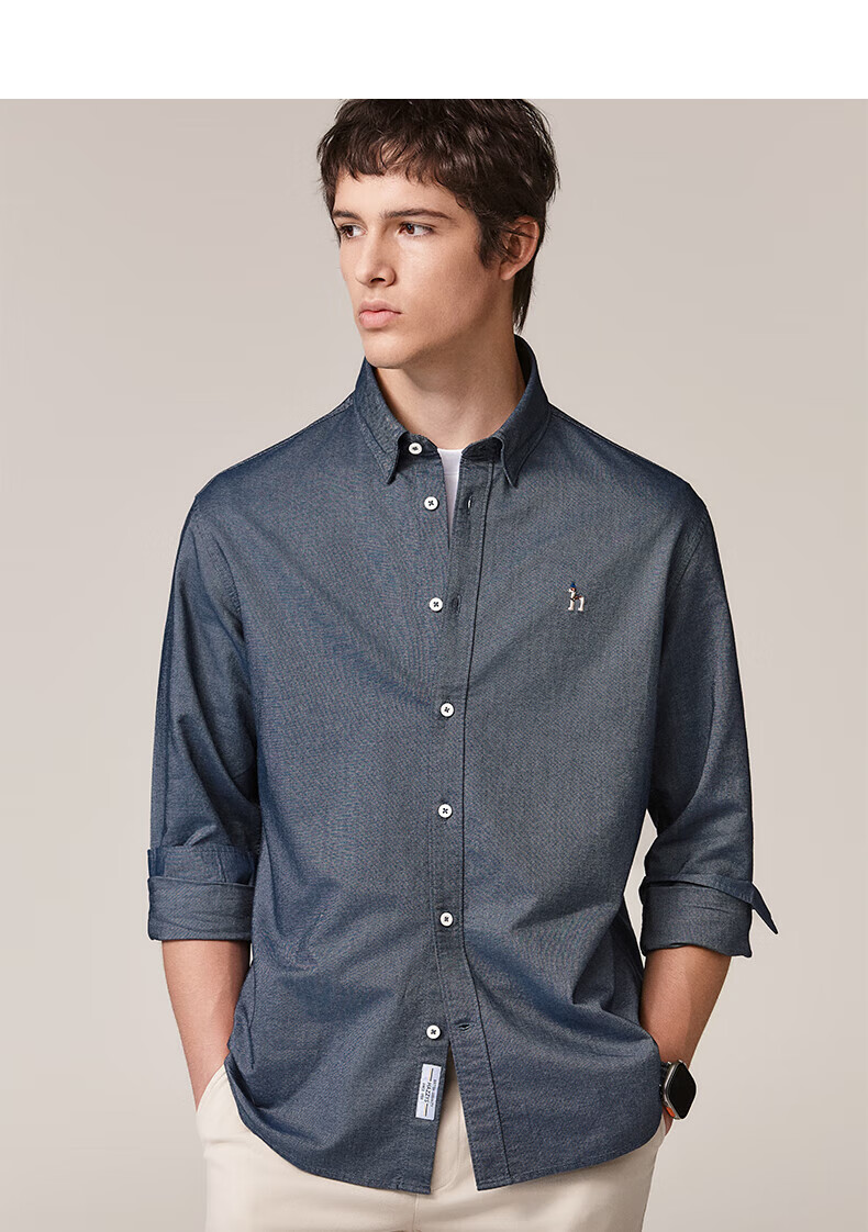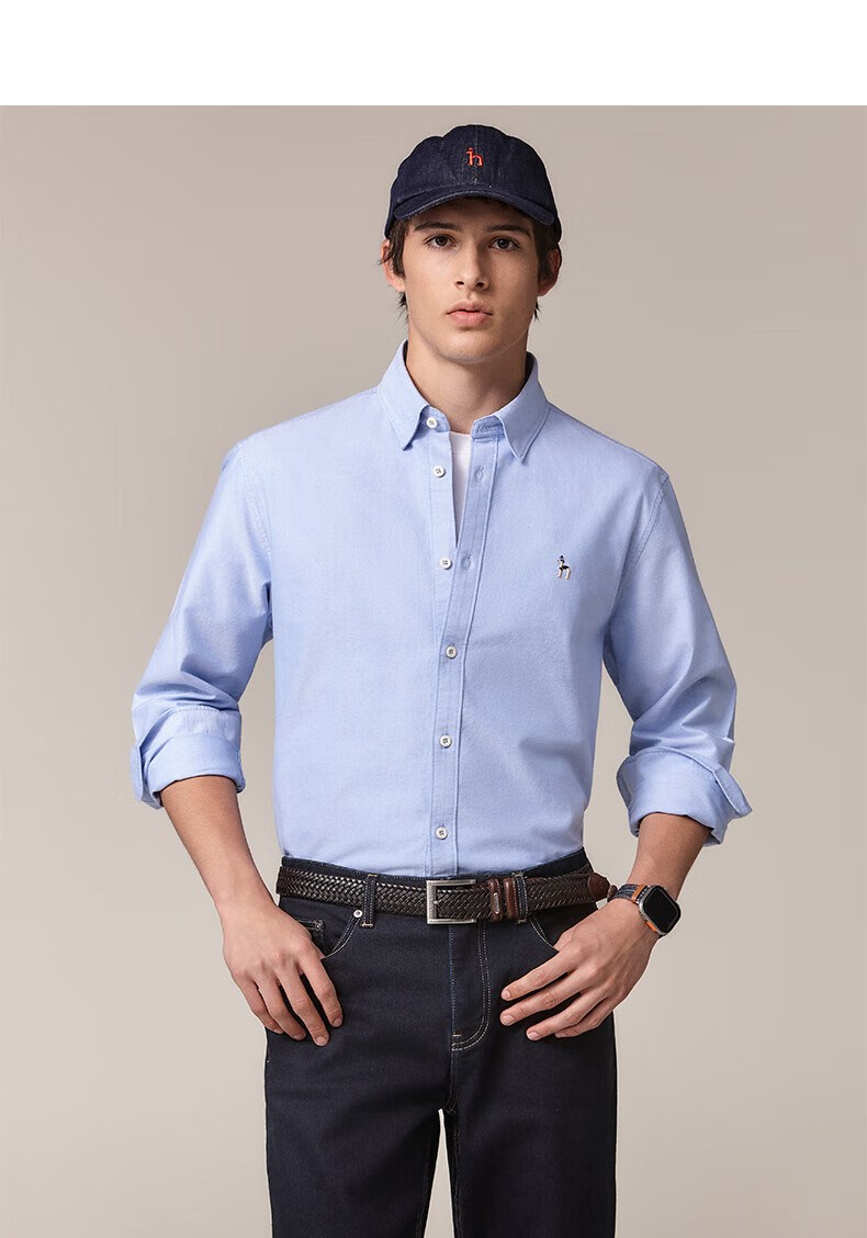 HAZZYS мужские весенне-осенние мужские рубашки из чистого хлопка деловые однотонные рубашки с длинными рукавами для мужчин ASCZK1CCX58