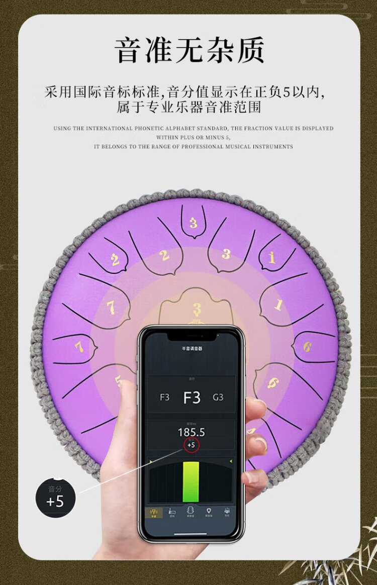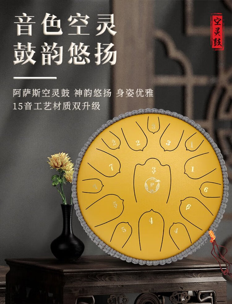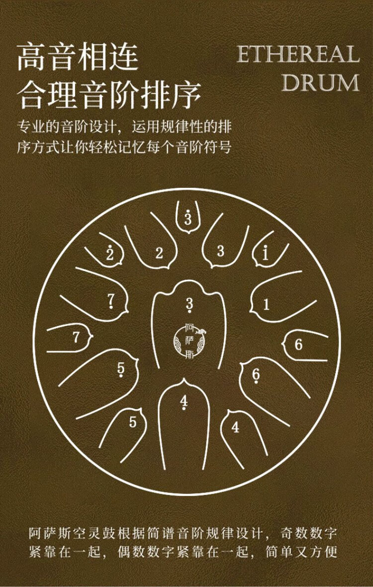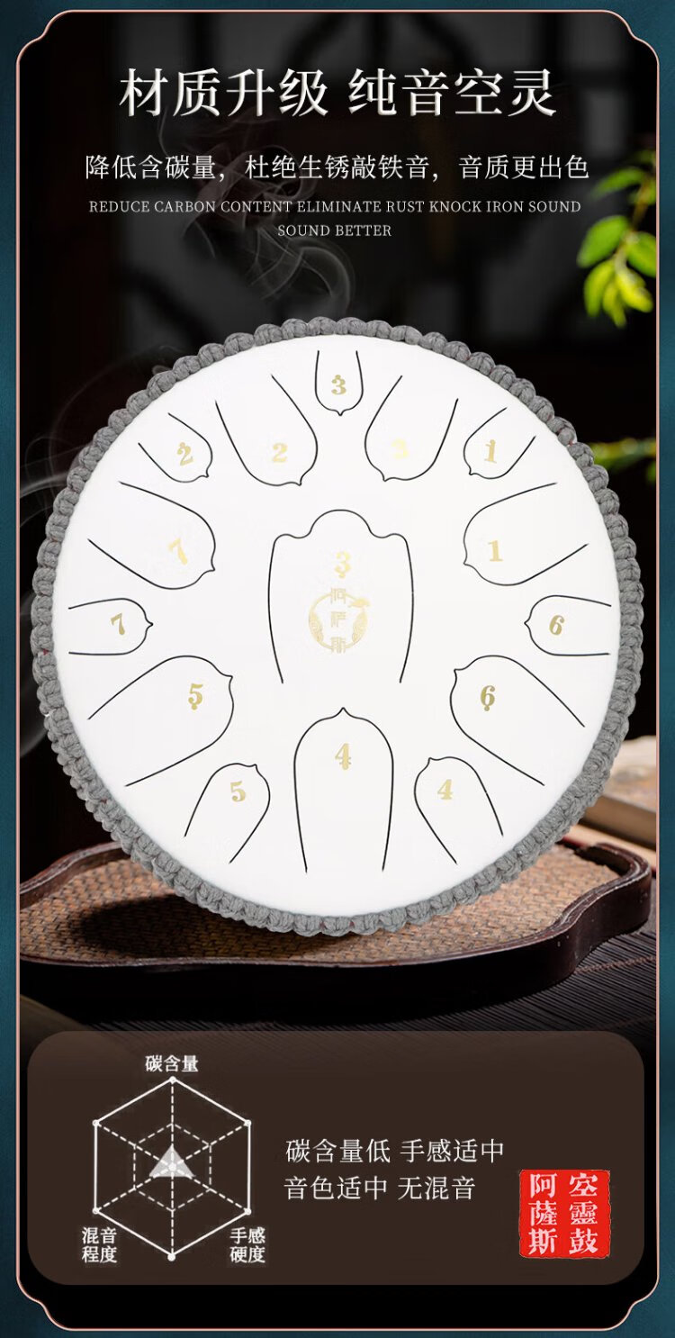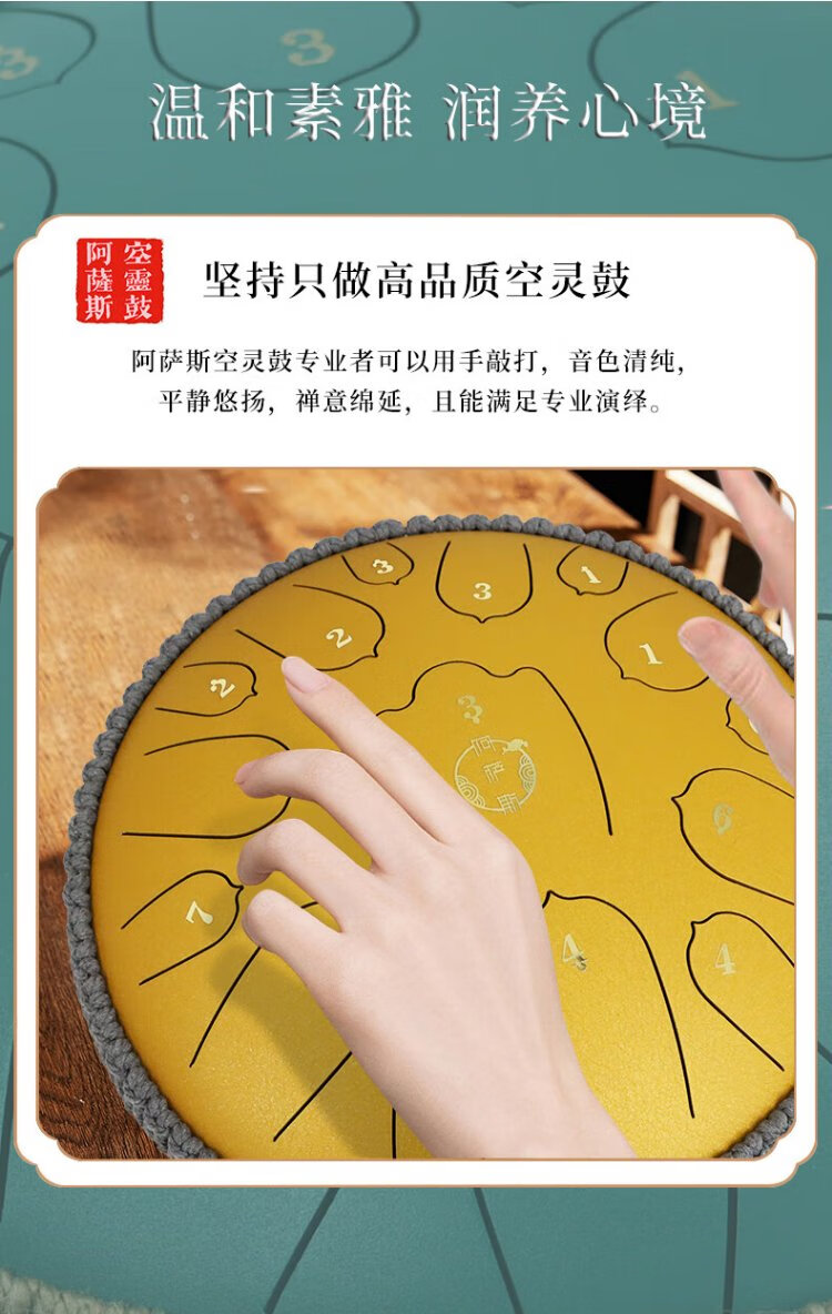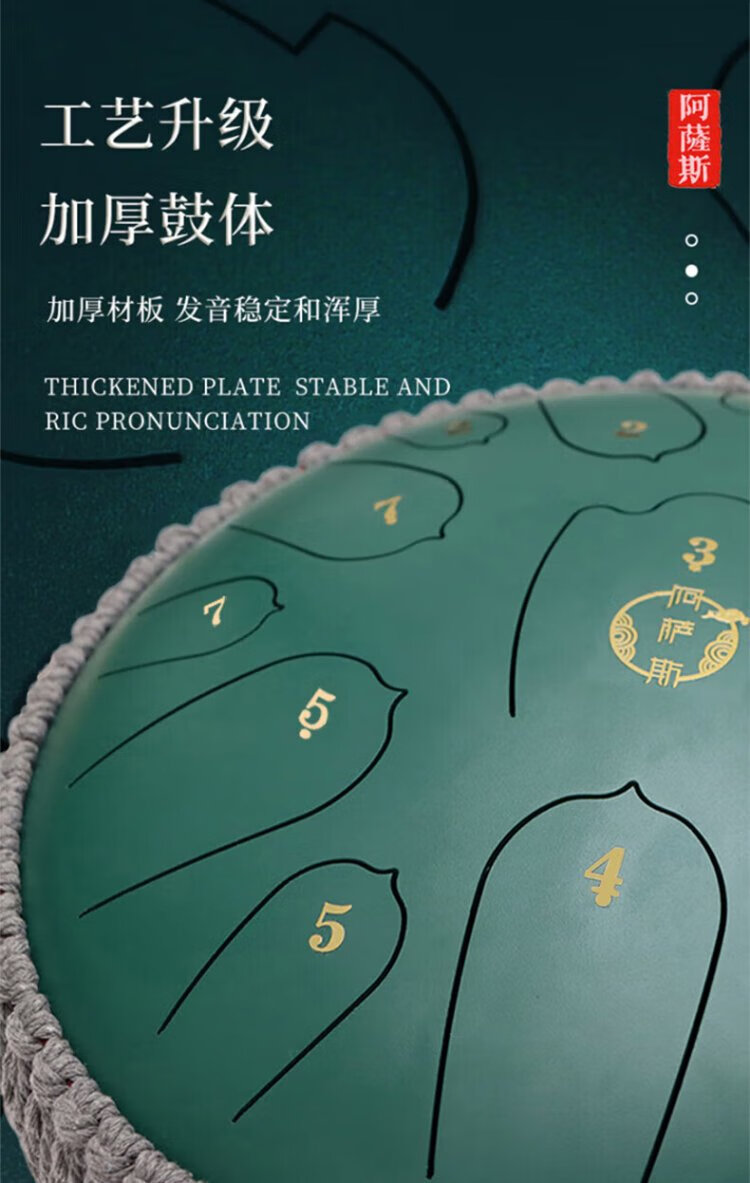 阿萨斯空灵鼓15音14寸成人初学者升级碳钢钢舌鼓手碟鼓礼物莲花斑点绿