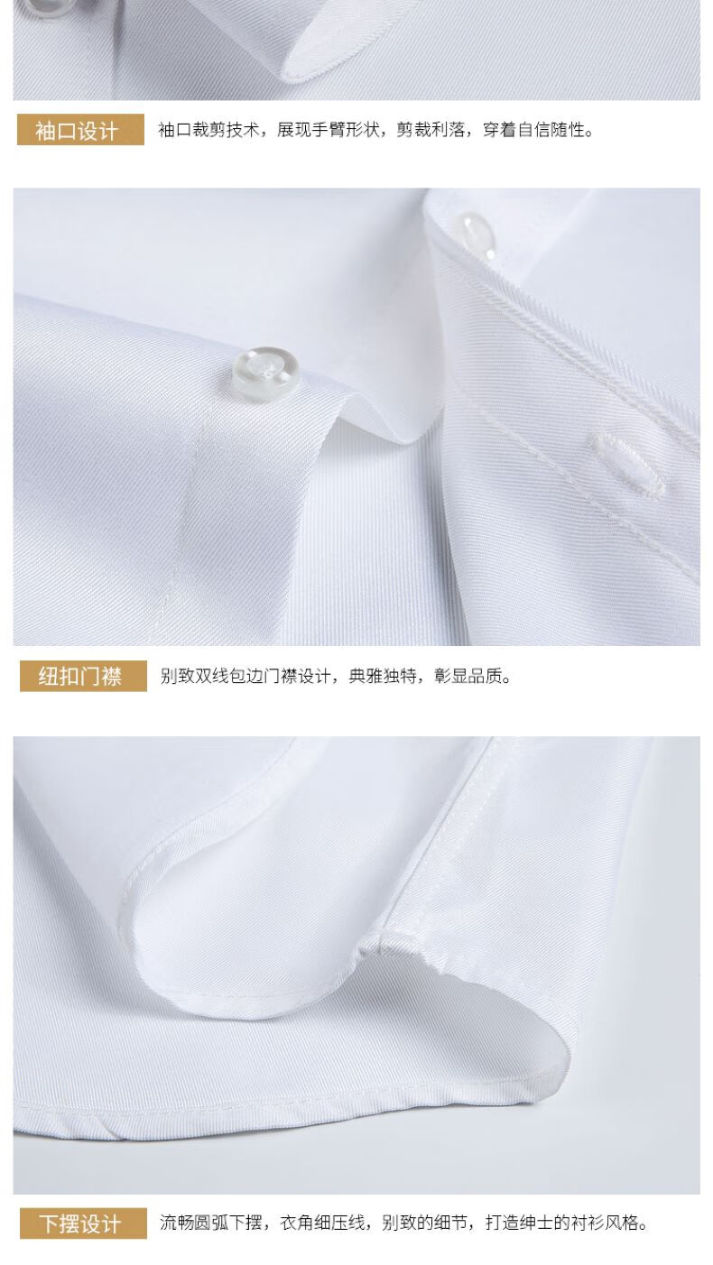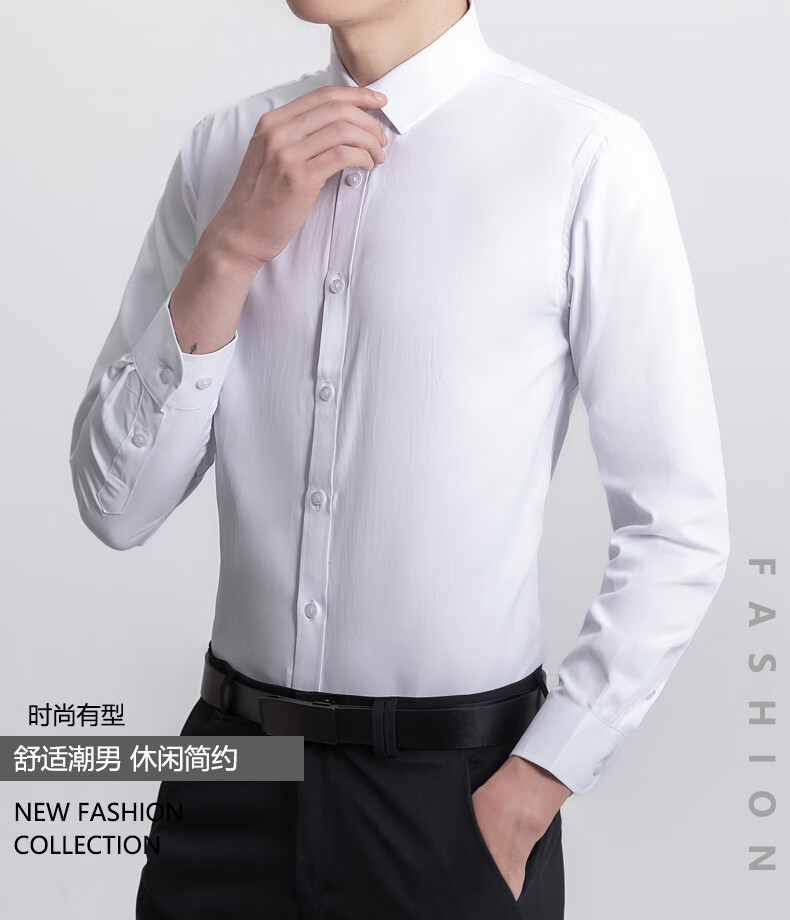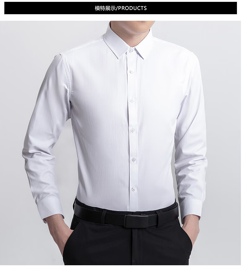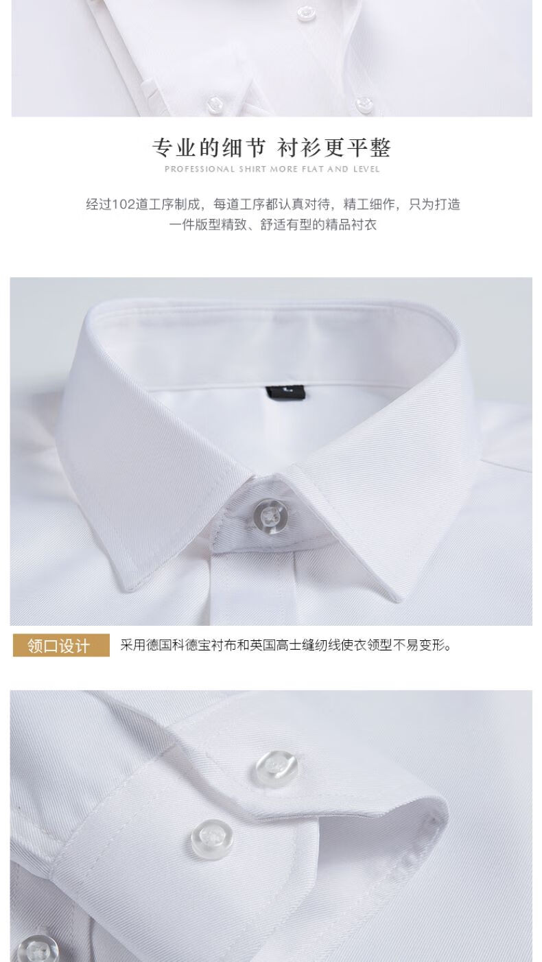 罗蒙(ROMON)衬衫男长袖纯色衬衣商务休闲职业正装通勤打底高档工作服 白 2XL