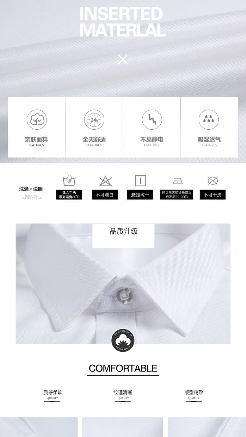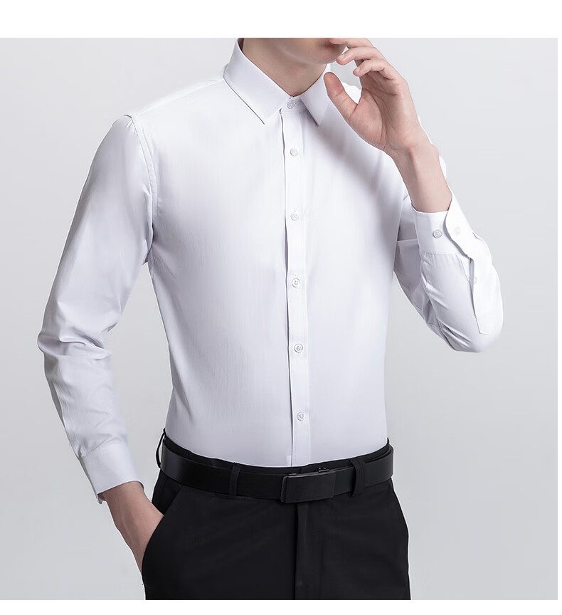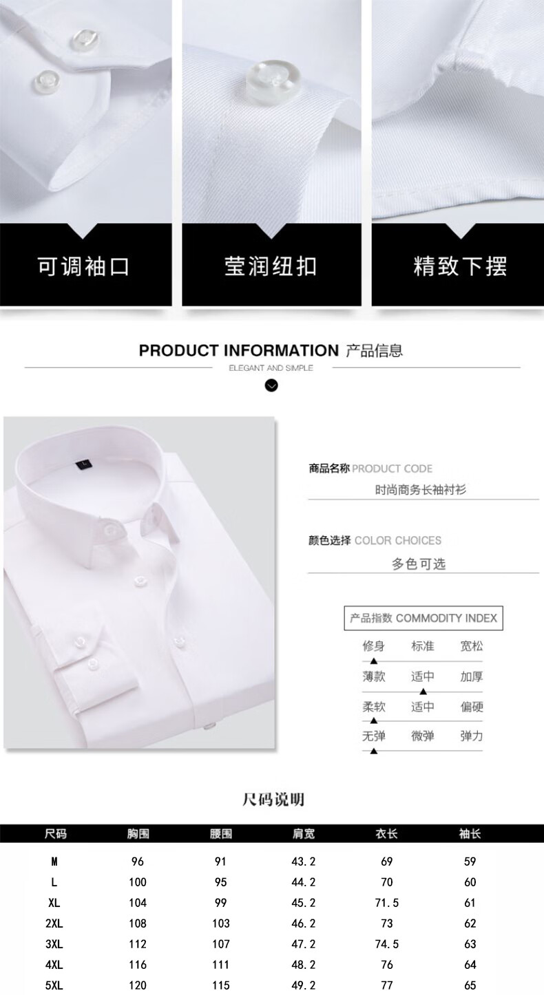 罗蒙(ROMON)衬衫男长袖纯色衬衣商务休闲职业正装通勤打底高档工作服 白 2XL