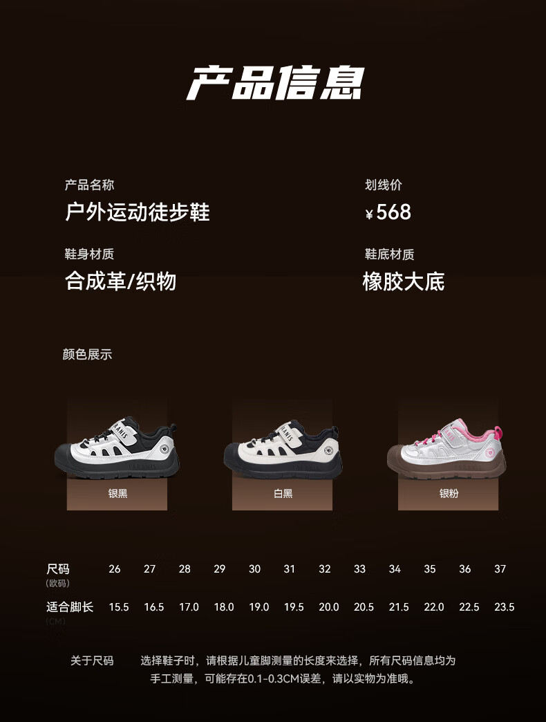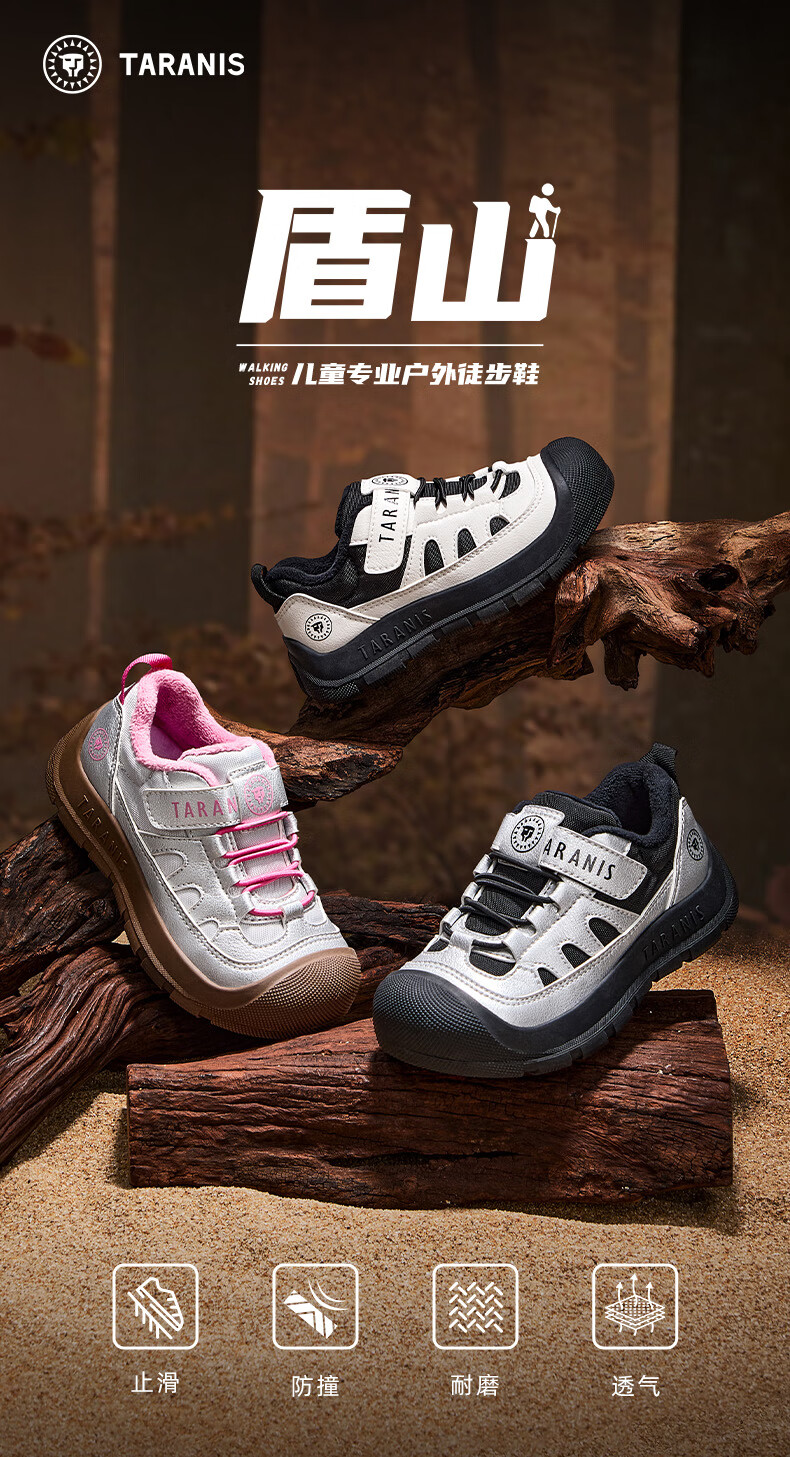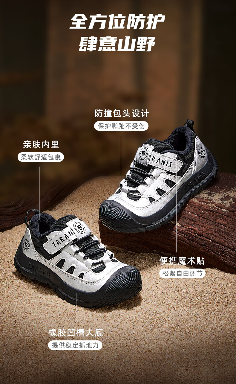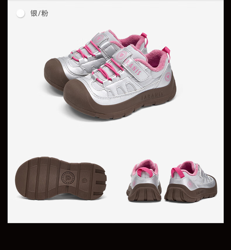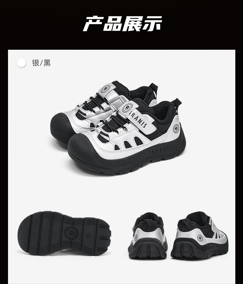 Terranis children's shoes autumn children's non-slip boys' sports shoes wear-resistant girls' outdoor hiking shoes silver/black 28