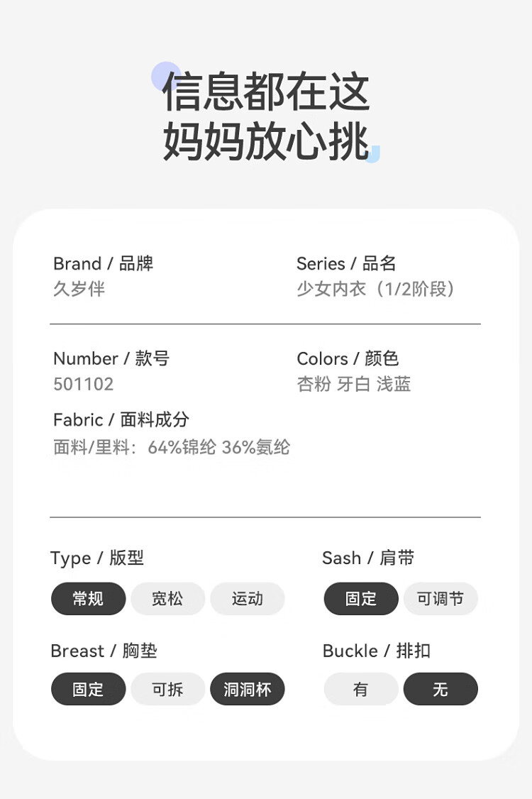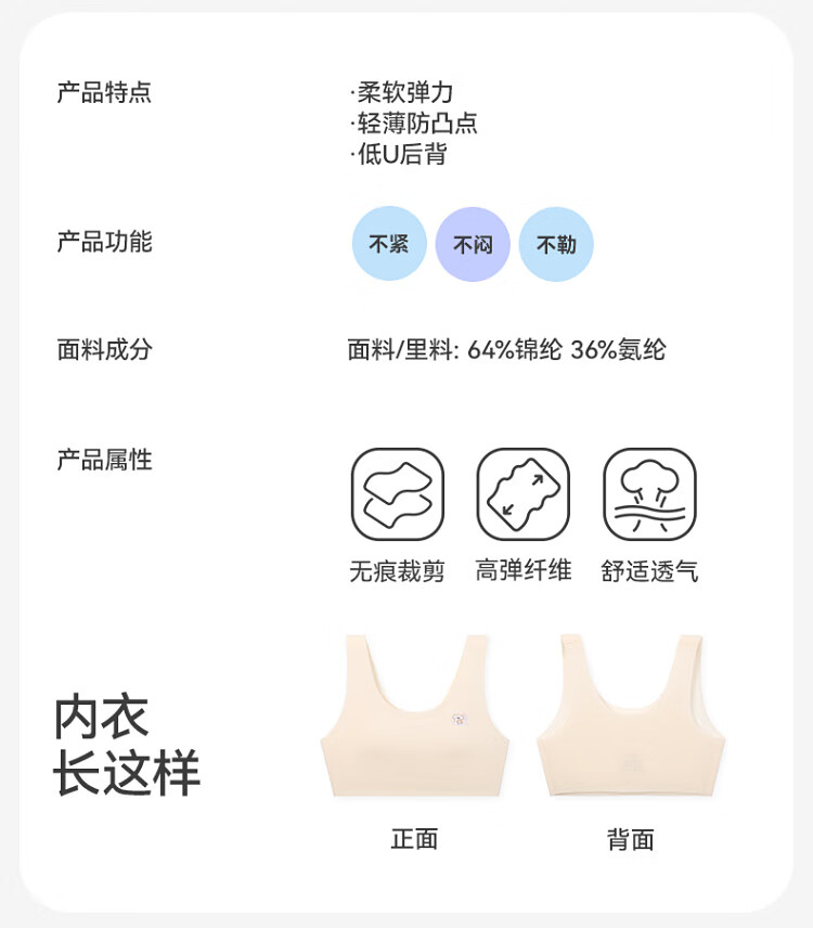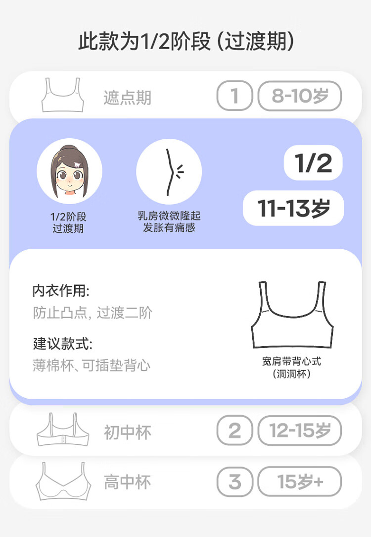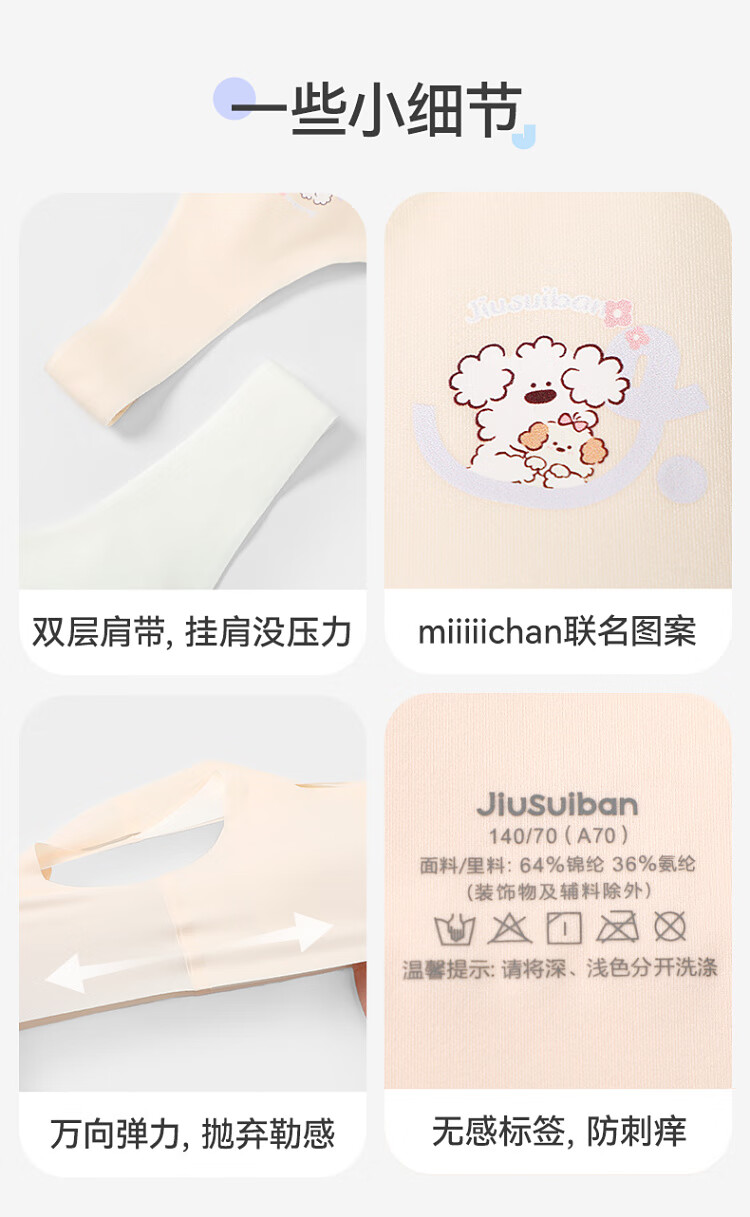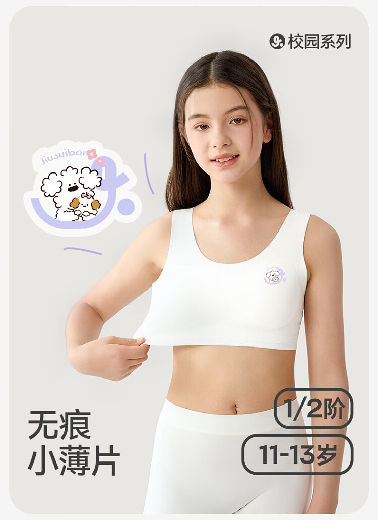 久岁伴miiiiichan联名儿童内衣女童11-13岁A类防凸无痕发育少女文胸背心