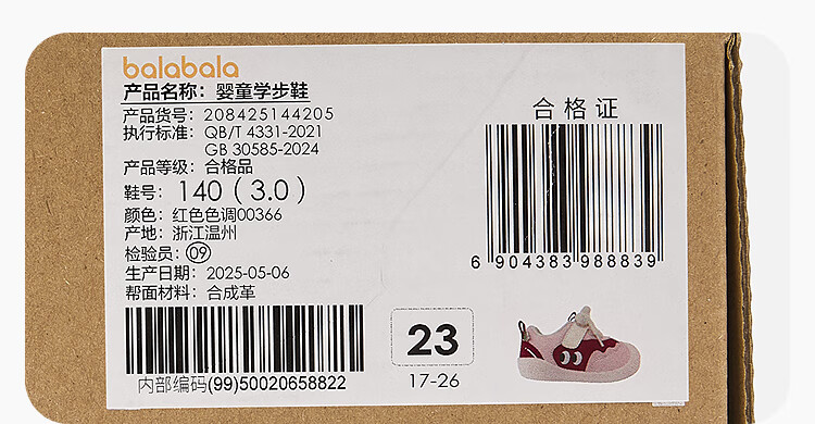 巴拉巴拉童鞋儿童学步鞋婴儿鞋子男女童宝宝鞋2025秋冬运动鞋208425144205