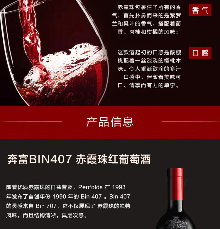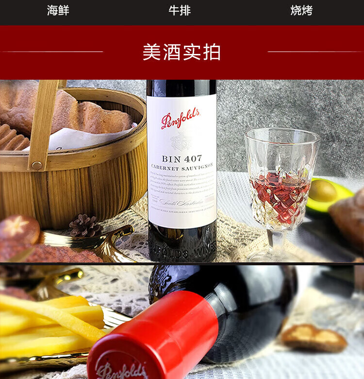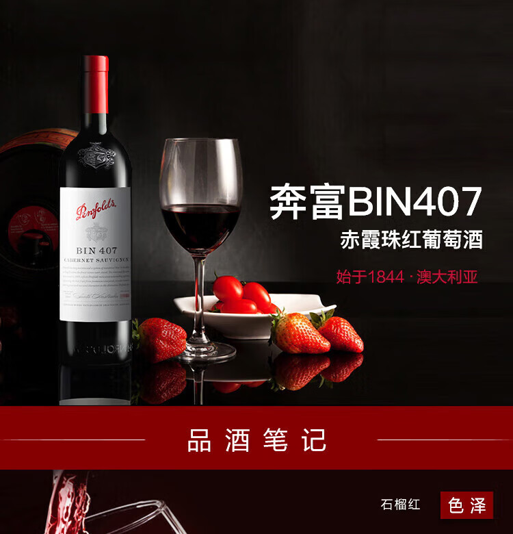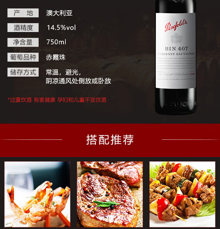 奔富BIN407赤霞珠干红葡萄酒礼盒 750ml 中秋送礼 原瓶进口 正品保证