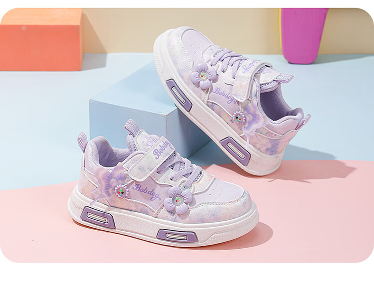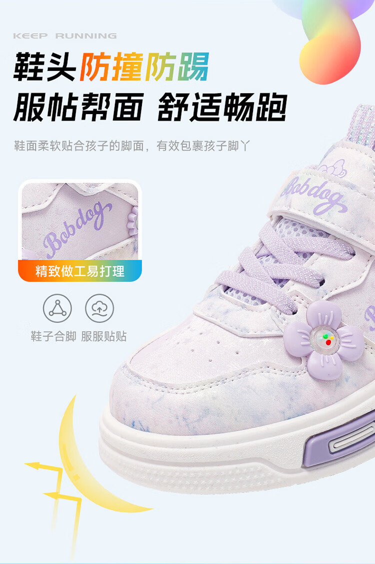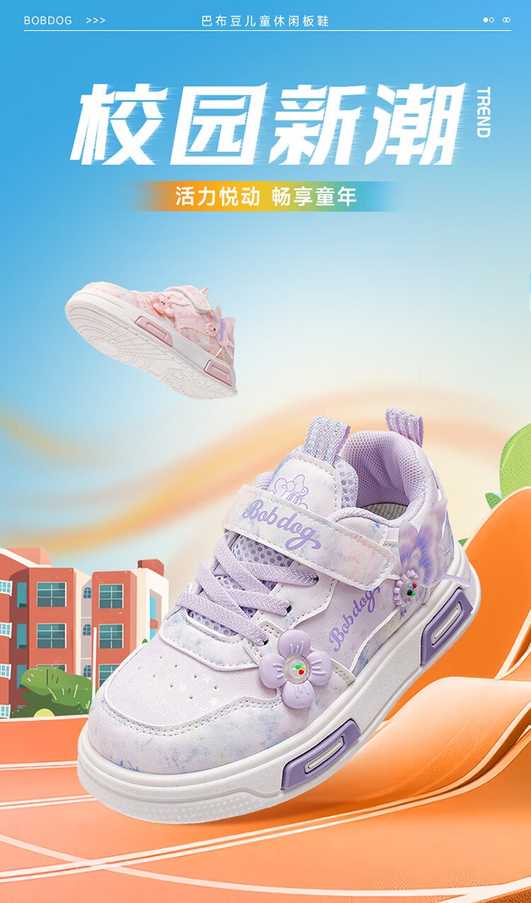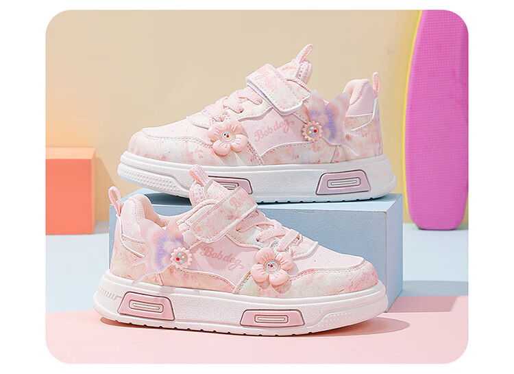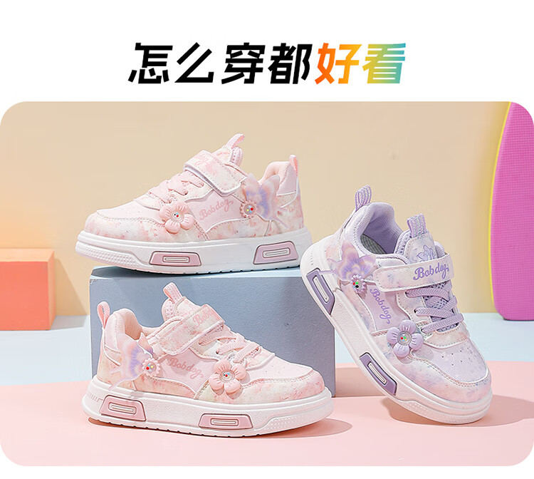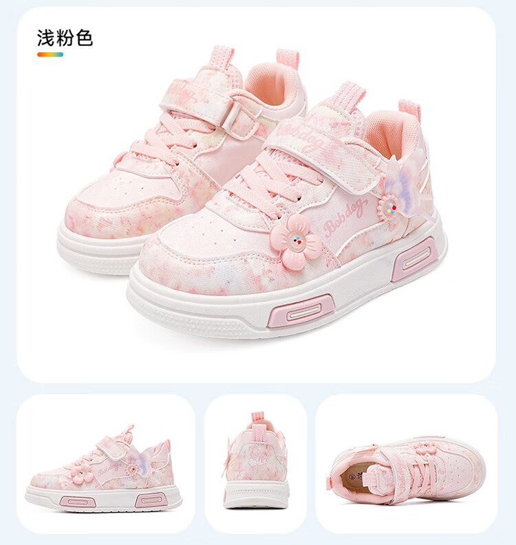 巴布豆童鞋女童秋款时尚百搭跑鞋软底舒适儿童板鞋101553195浅粉色30