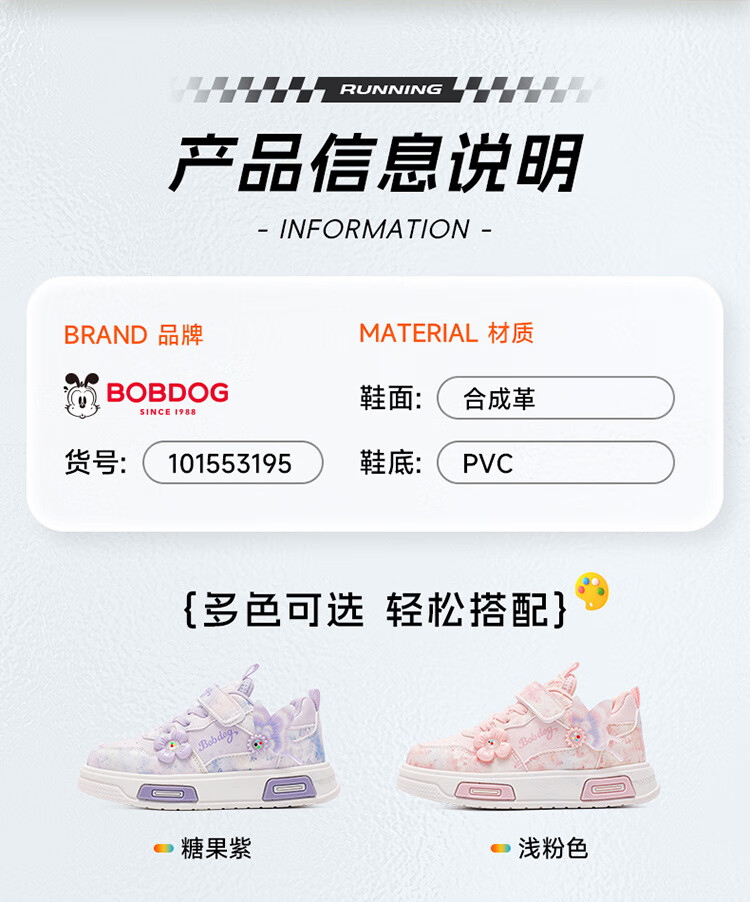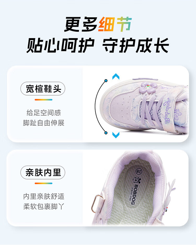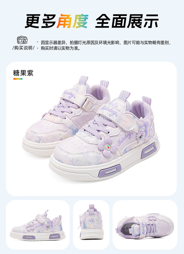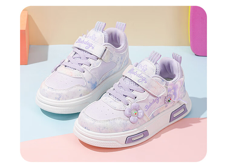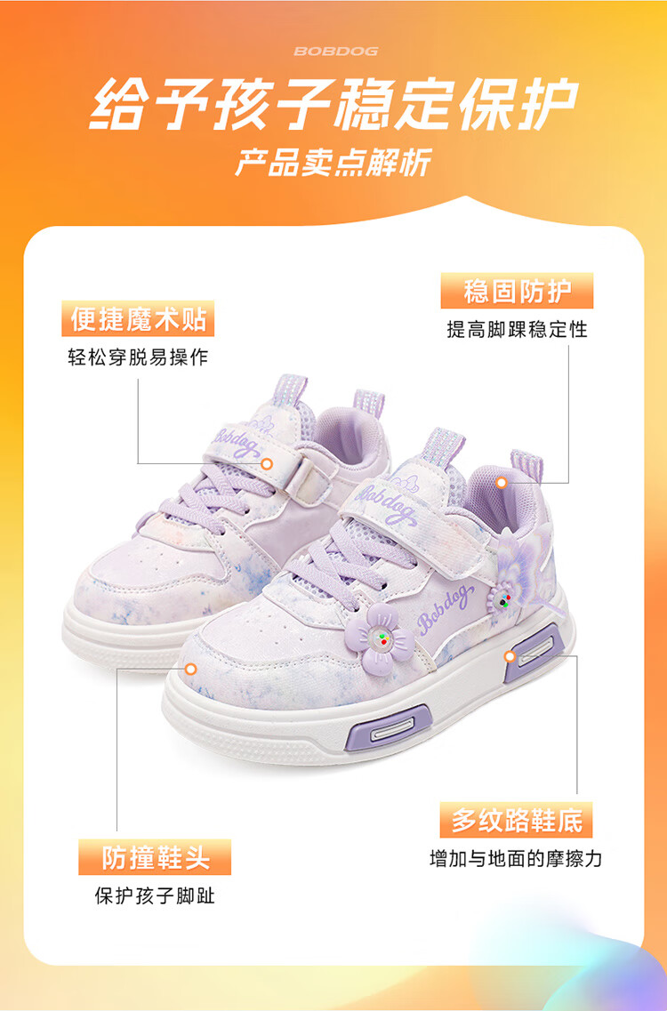 巴布豆童鞋女童秋款时尚百搭跑鞋软底舒适儿童板鞋101553195浅粉色30