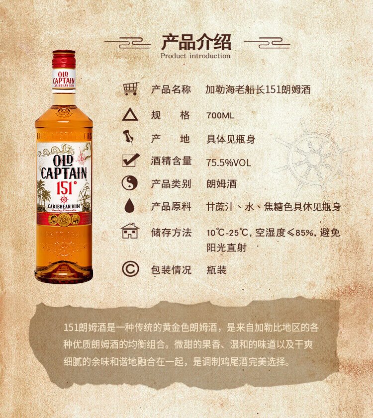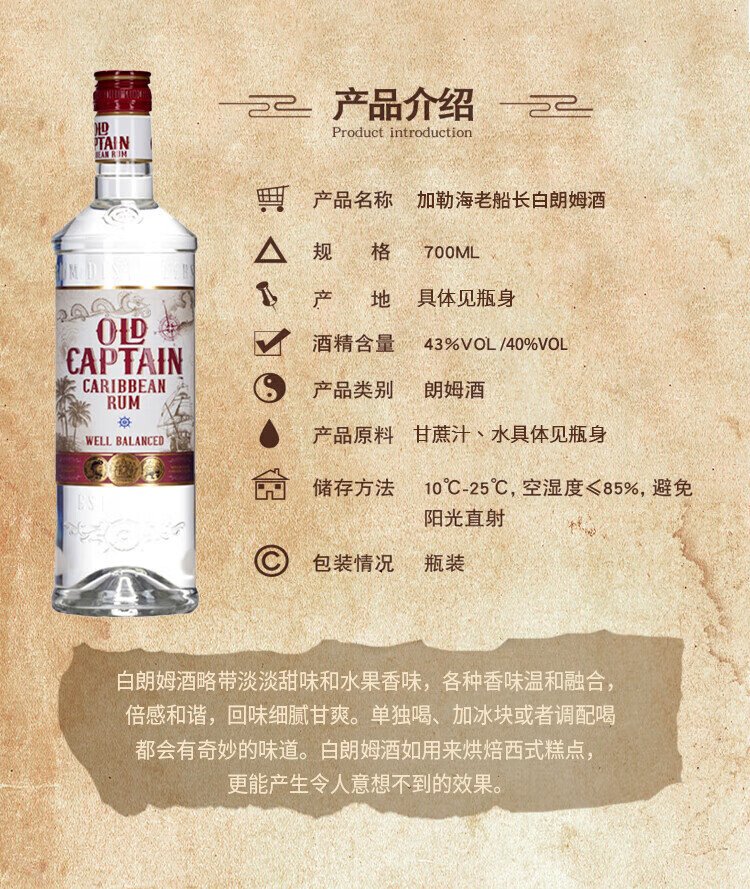 Caribbean Old Captain White Rum Mojito Mixing Base Liquor Original Imported Wine 6 Bottles Full Box 700mL Rum