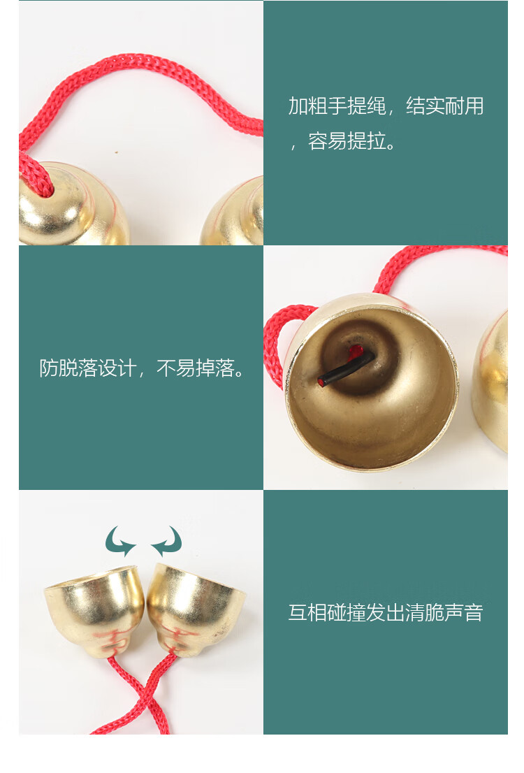Orff children's percussion instrument handle large and small bell bells kindergarten early education vocal practice teaching bell bell pure copper toys pure copper large handle bell bells pair (4.5cm)