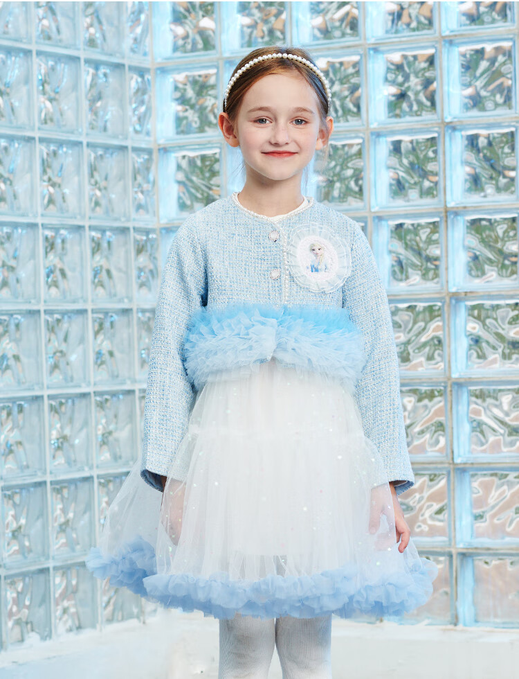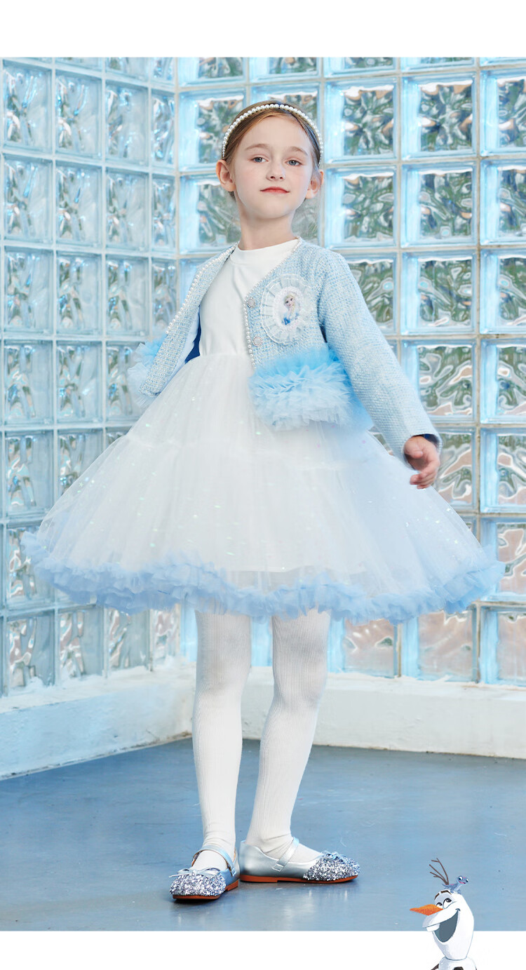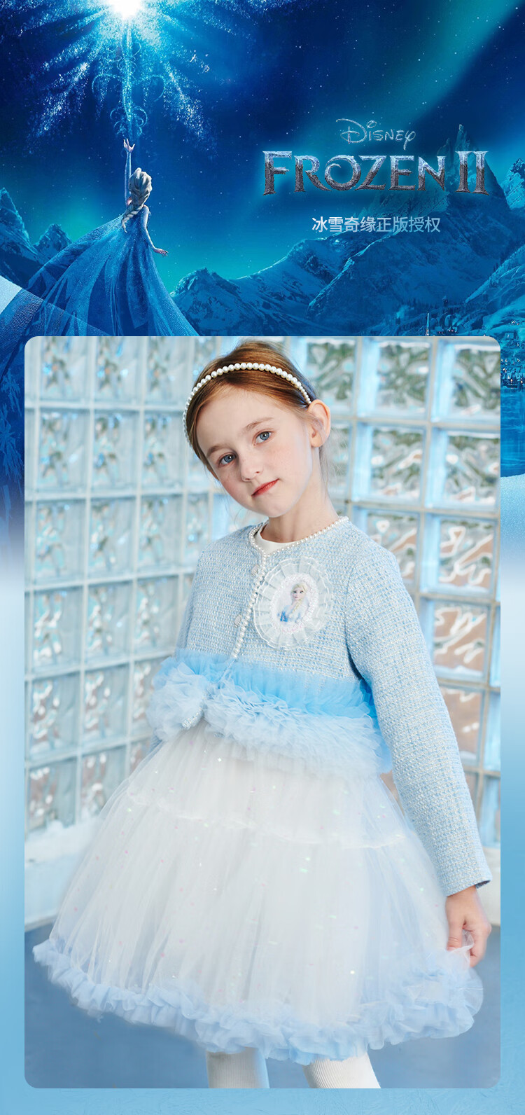 迪士尼艾莎女童裙子套装秋装2025新款公主裙洋气连衣裙儿童套装两件套