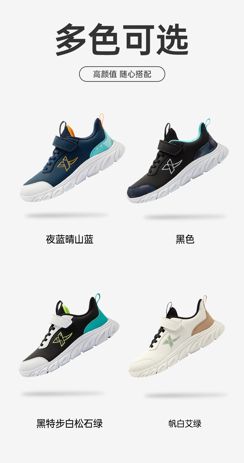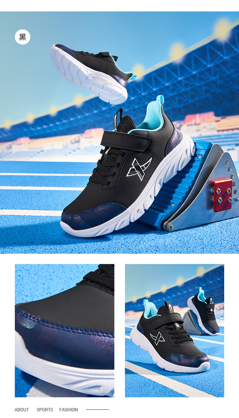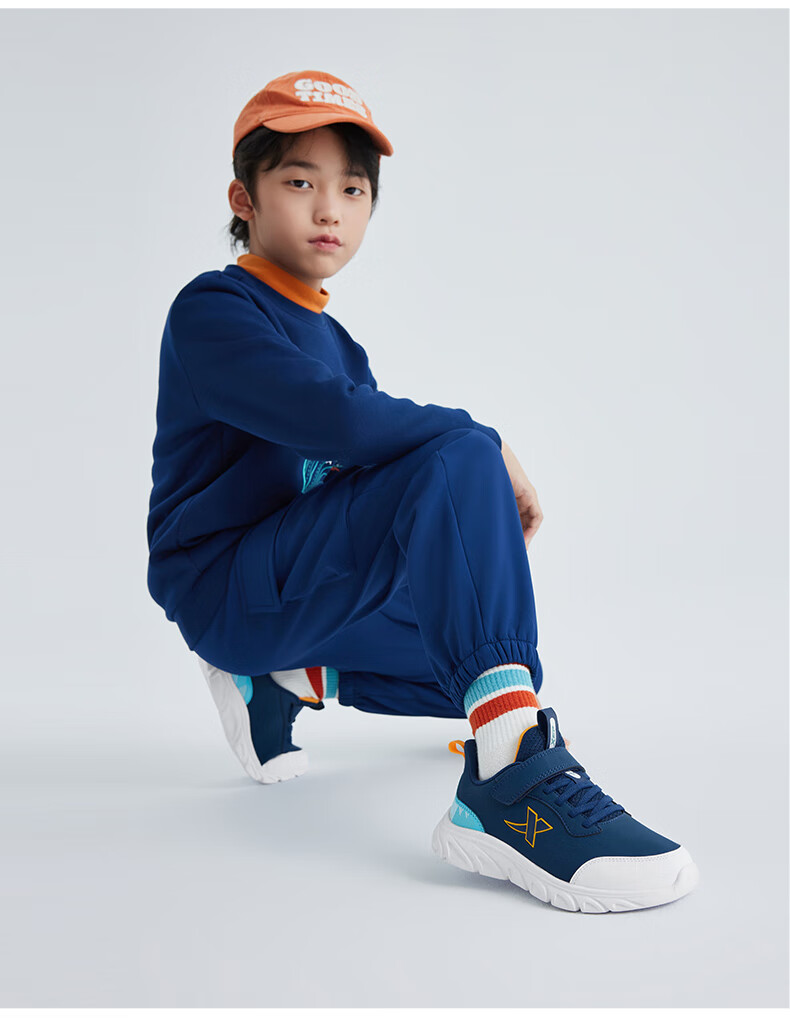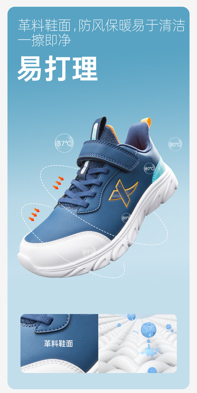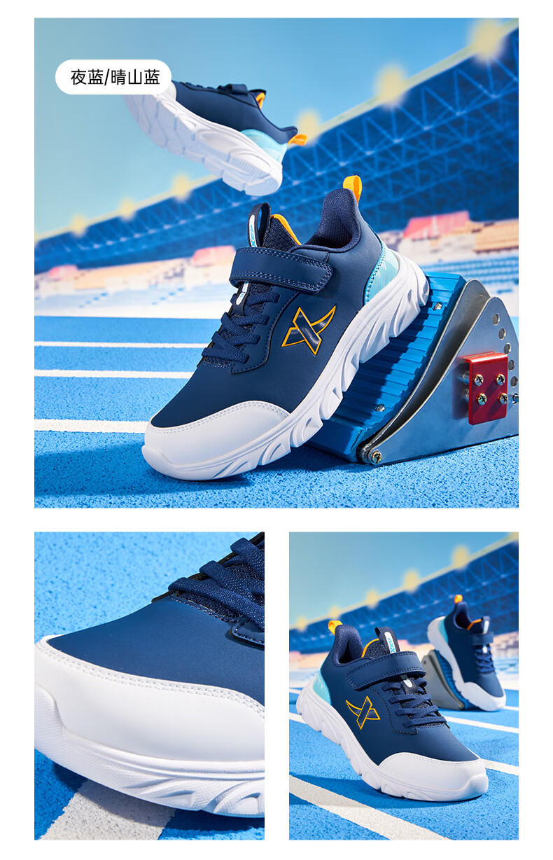 特步儿童童鞋基础跑鞋男女童全革百搭运动鞋 夜蓝/晴山蓝 36