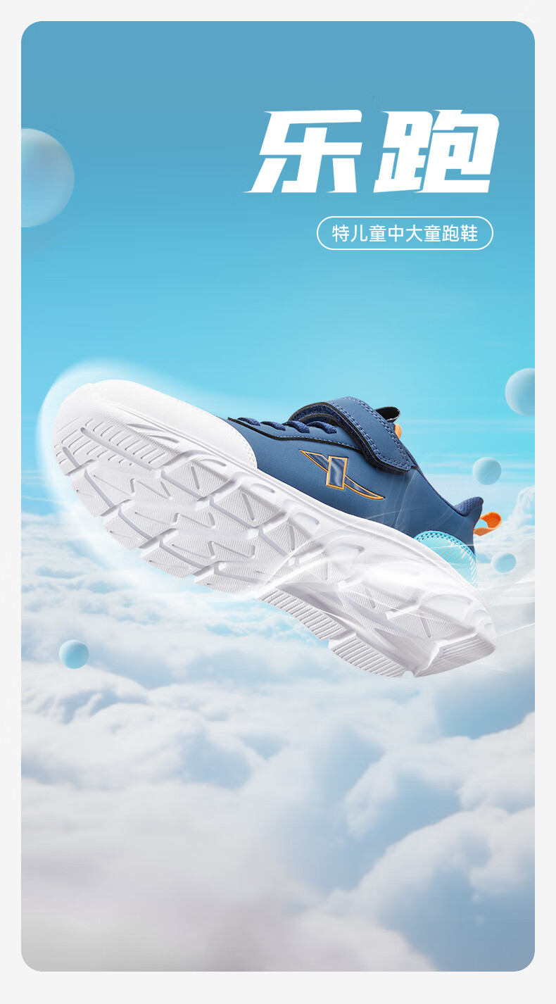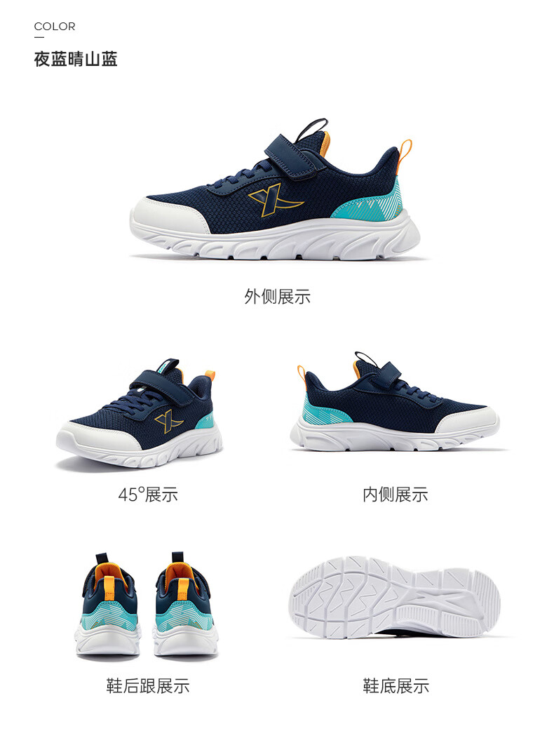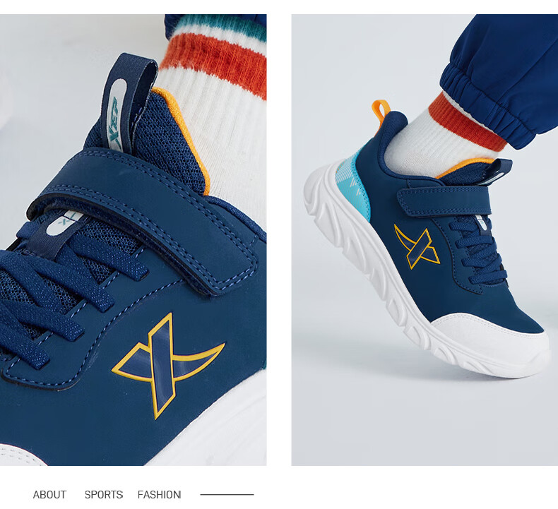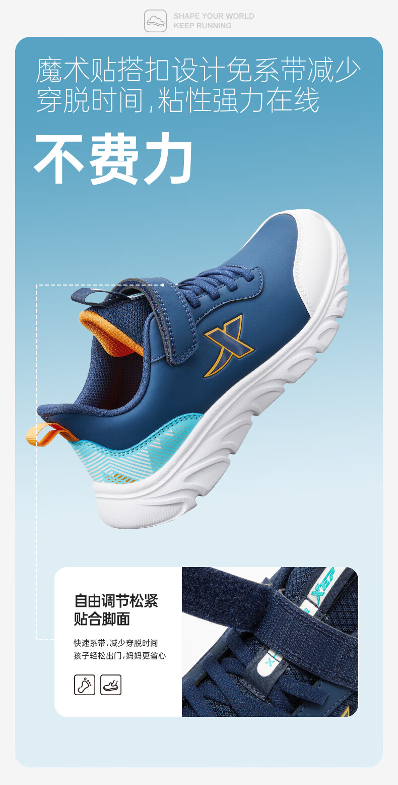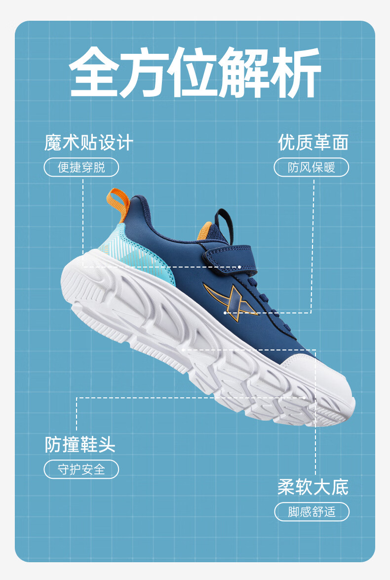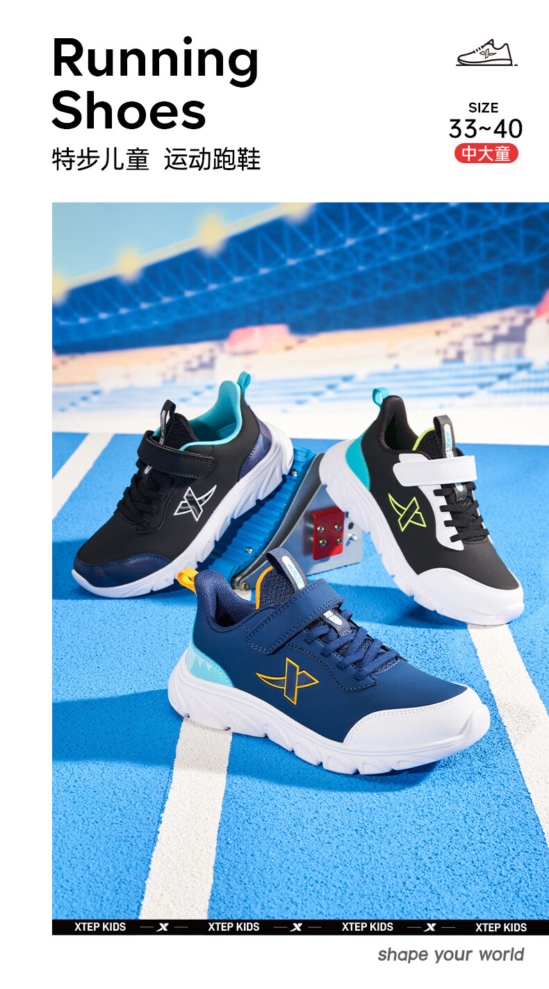 特步儿童童鞋基础跑鞋男女童全革百搭运动鞋 夜蓝/晴山蓝 36