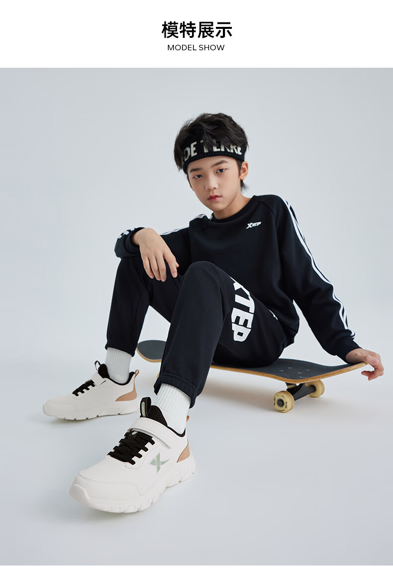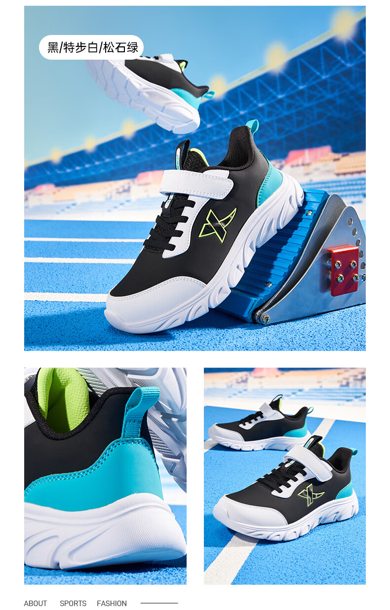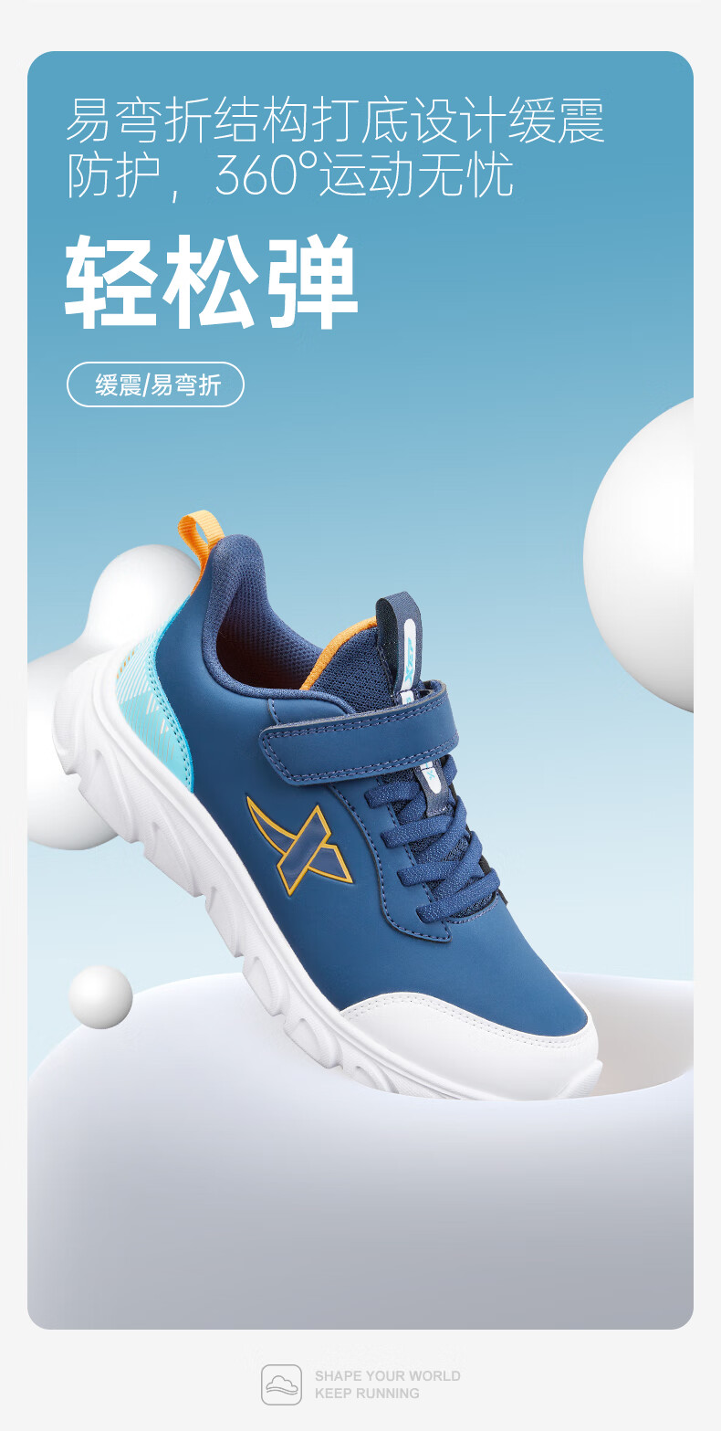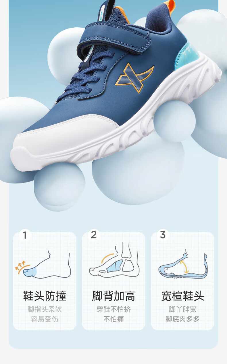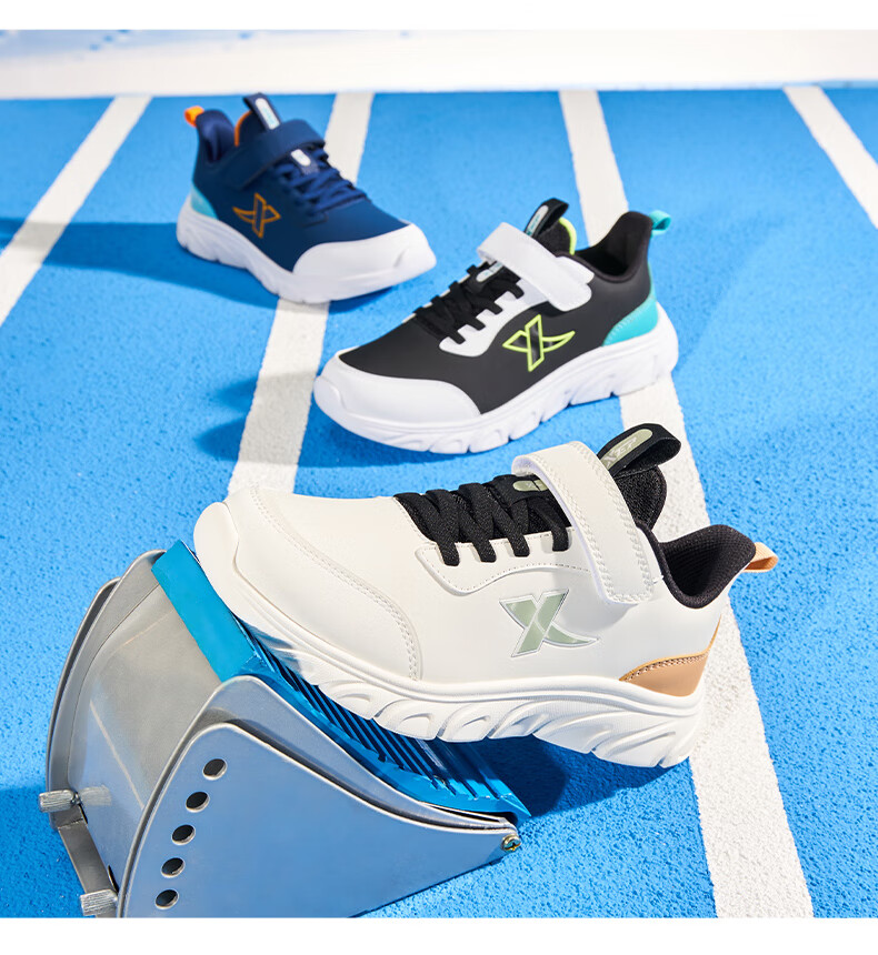 特步儿童童鞋基础跑鞋男女童全革百搭运动鞋 夜蓝/晴山蓝 36