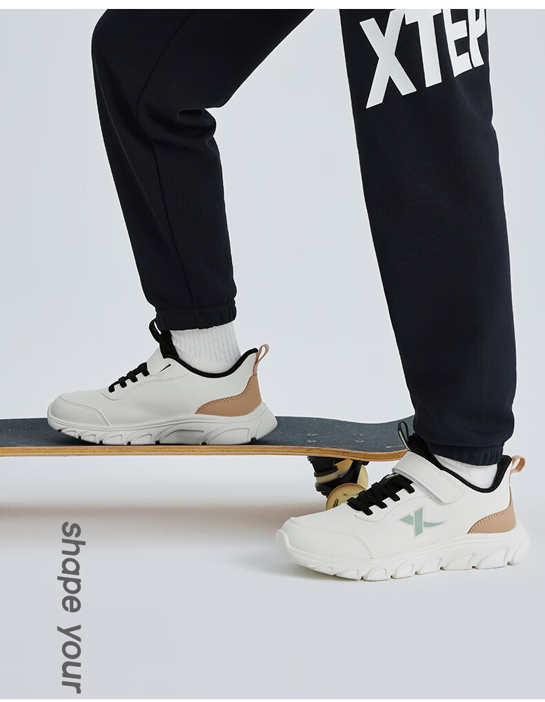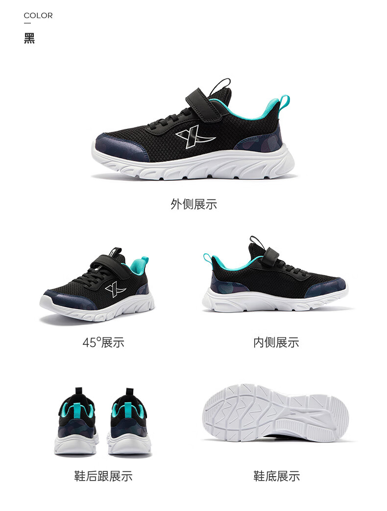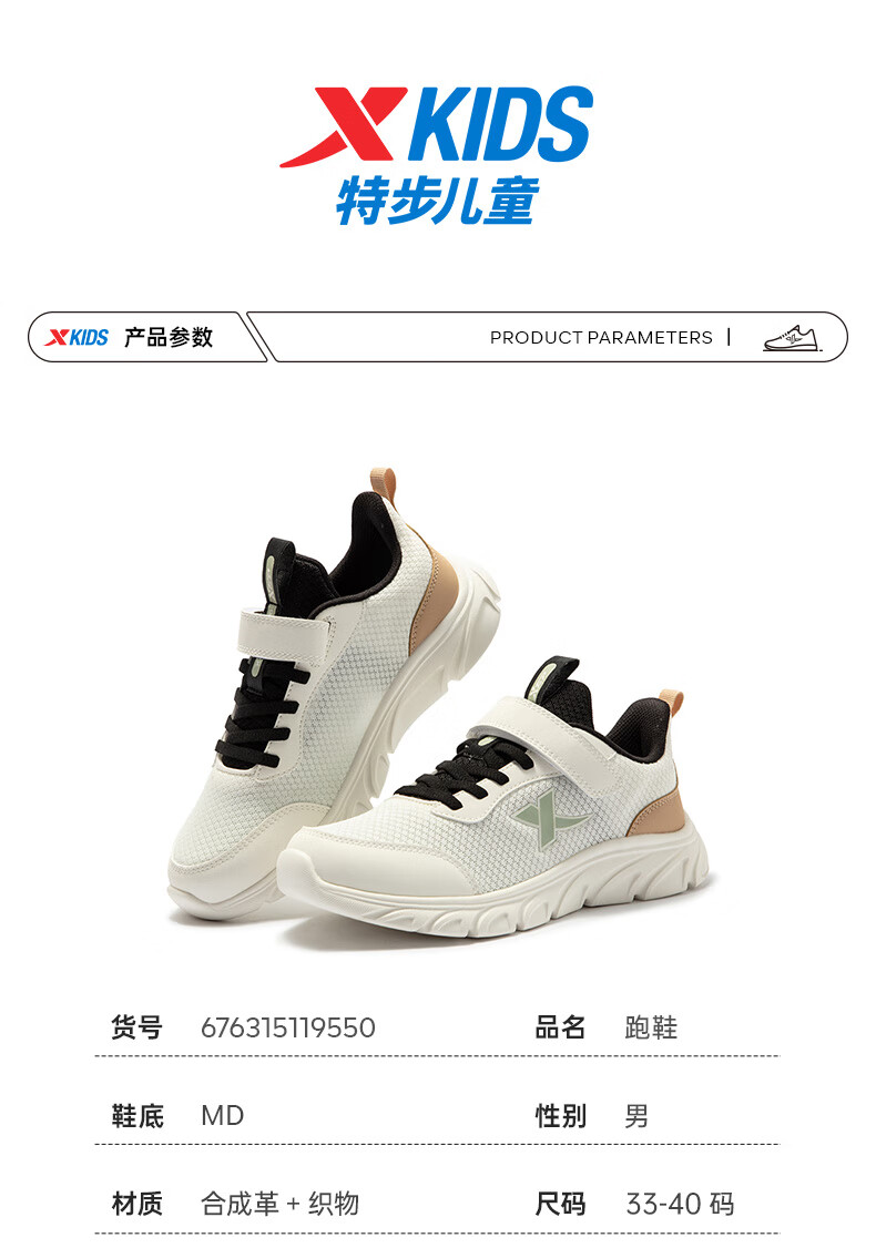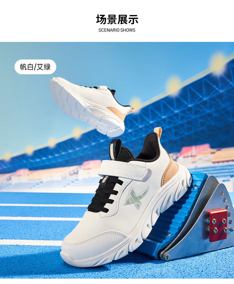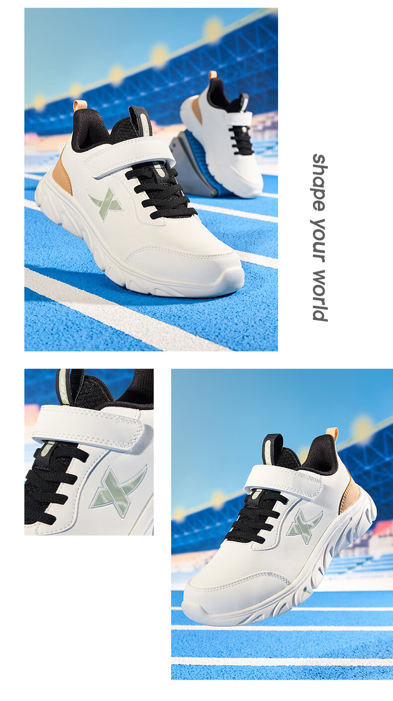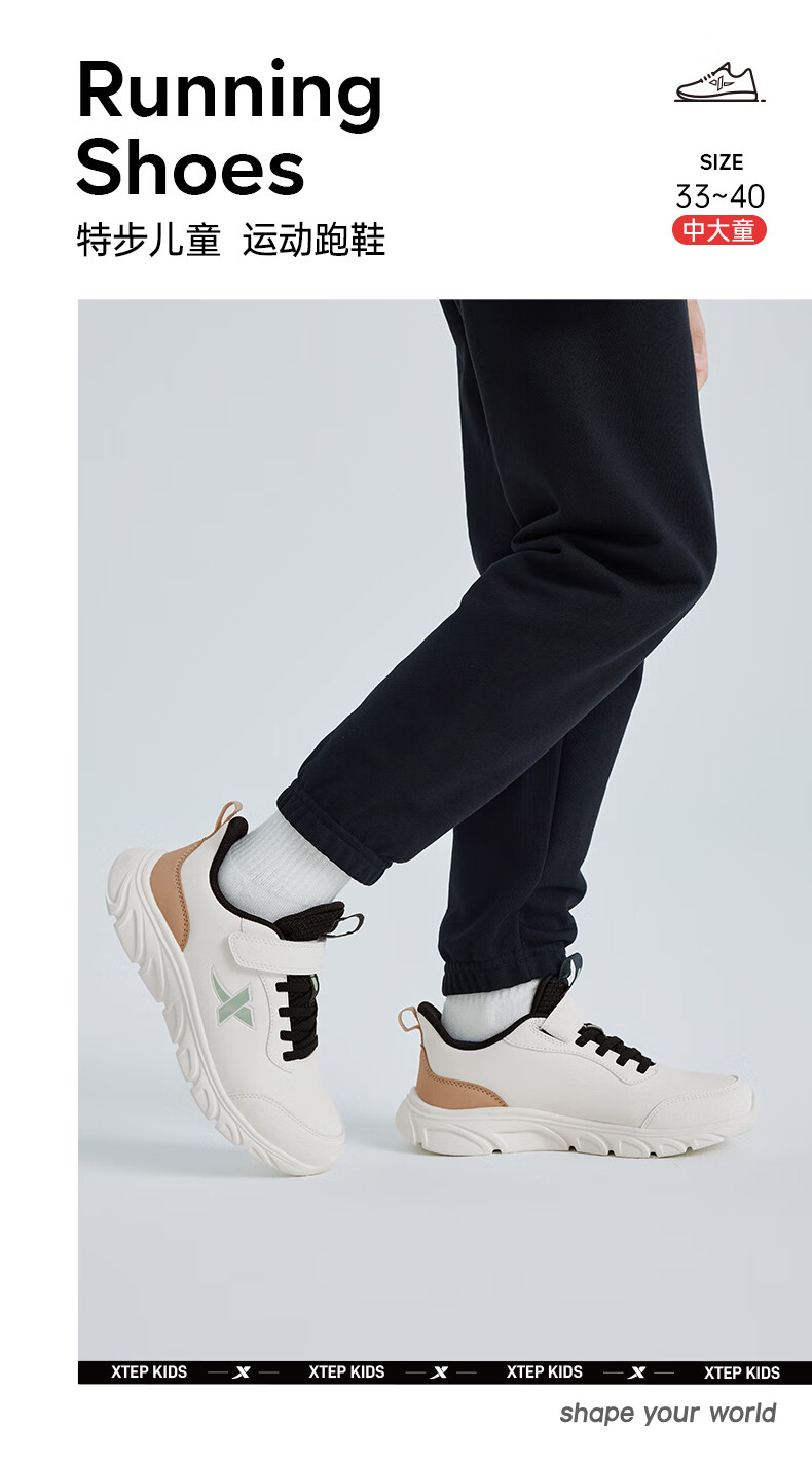 特步儿童童鞋基础跑鞋男女童全革百搭运动鞋 夜蓝/晴山蓝 36