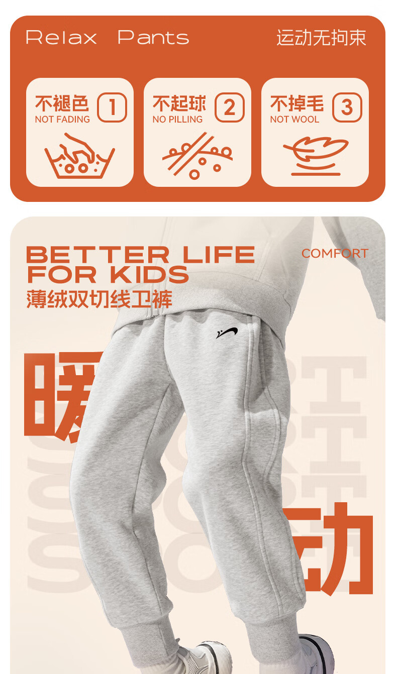 贵人鸟童装男童加绒裤子儿童秋冬款运动裤男大童冬季卫裤男孩灰色棉裤