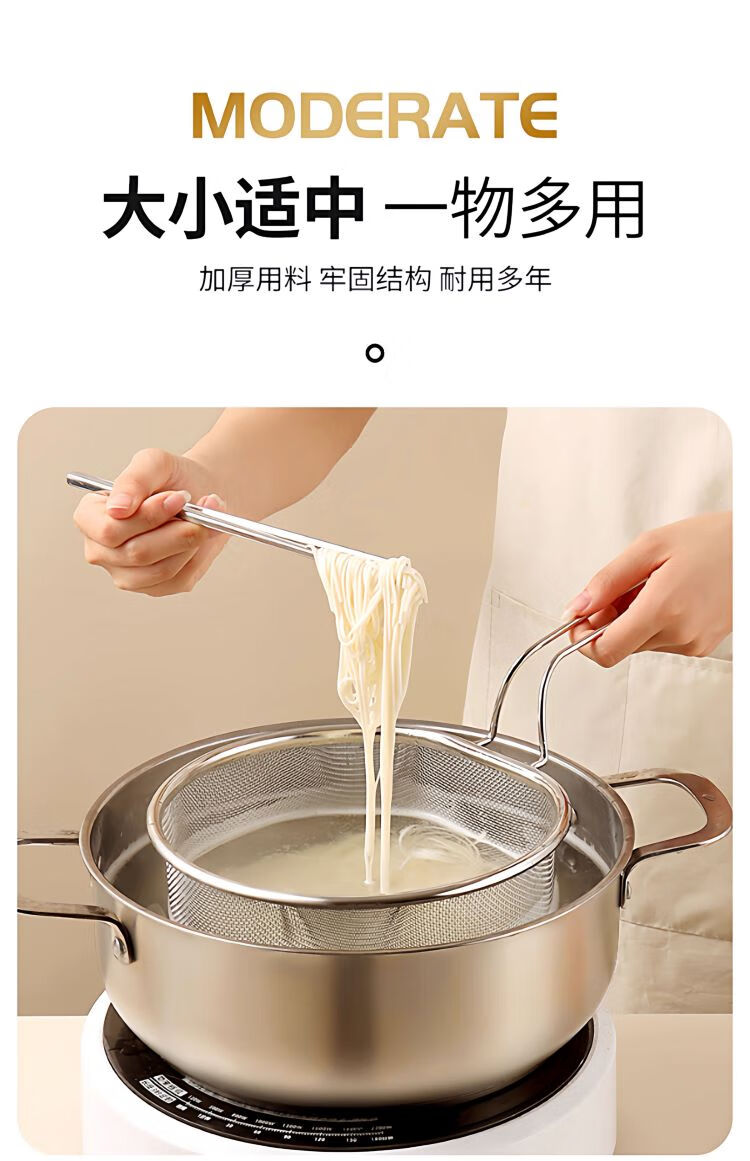 慕亚(MUYA)304不锈钢漏勺家用厨房煮面漏网面条过滤网捞面网篮漏网火锅