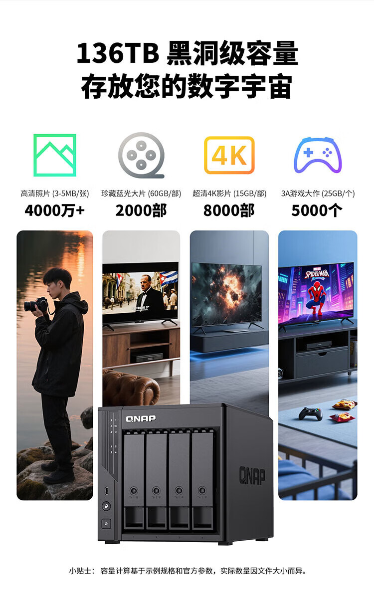 QNAP Qu405 enterprise-class home storage N355 16G memory four-bay network storage NAS private cloud AI photo album mobile phone backup network disk interconnection file server