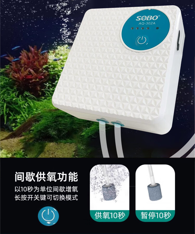 Sobo (sobo) fish tank oxygen pump rechargeable oxygen pump fish farming oxygen pump outdoor fishing oxygen pump AQ-301A single hole 2W