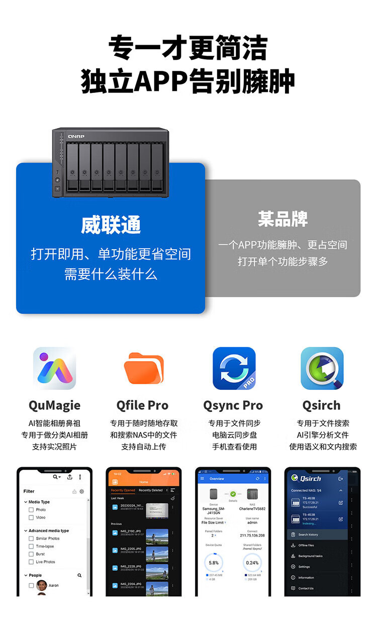 威联通(QNAP)Qu405企业级家庭存储 N355 16G内存 8T容量四盘位网络存储NAS私有云 AI相册手机备份 网盘服务器