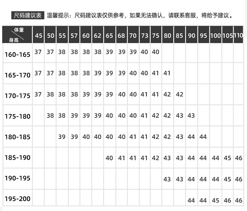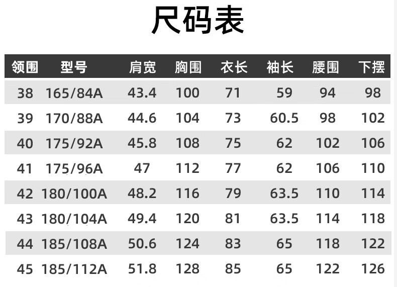 China (cm) 160-165/84-86 165-170 / 88-90 167-172 / 92-96 168-173 / 98-102 170-176 / 106-110