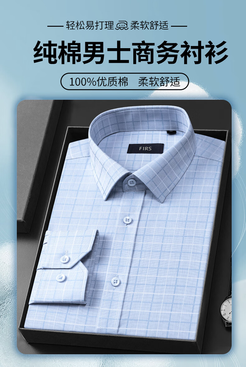 Shanshan long-sleeved shirt men's pure cotton Xinjiang cotton business casual shirt men's plaid top blue grid 41