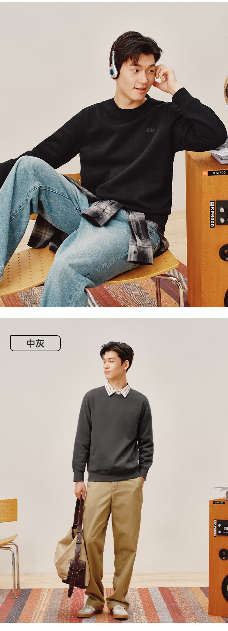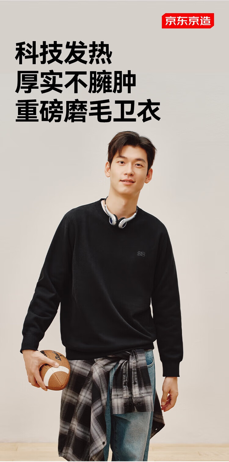 Jingjing Tokyo-made velvet sweatshirt men's 25 autumn new thickened heating loose couple versatile T-shirt black L