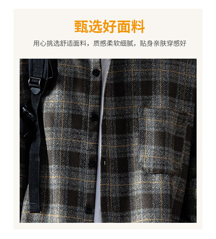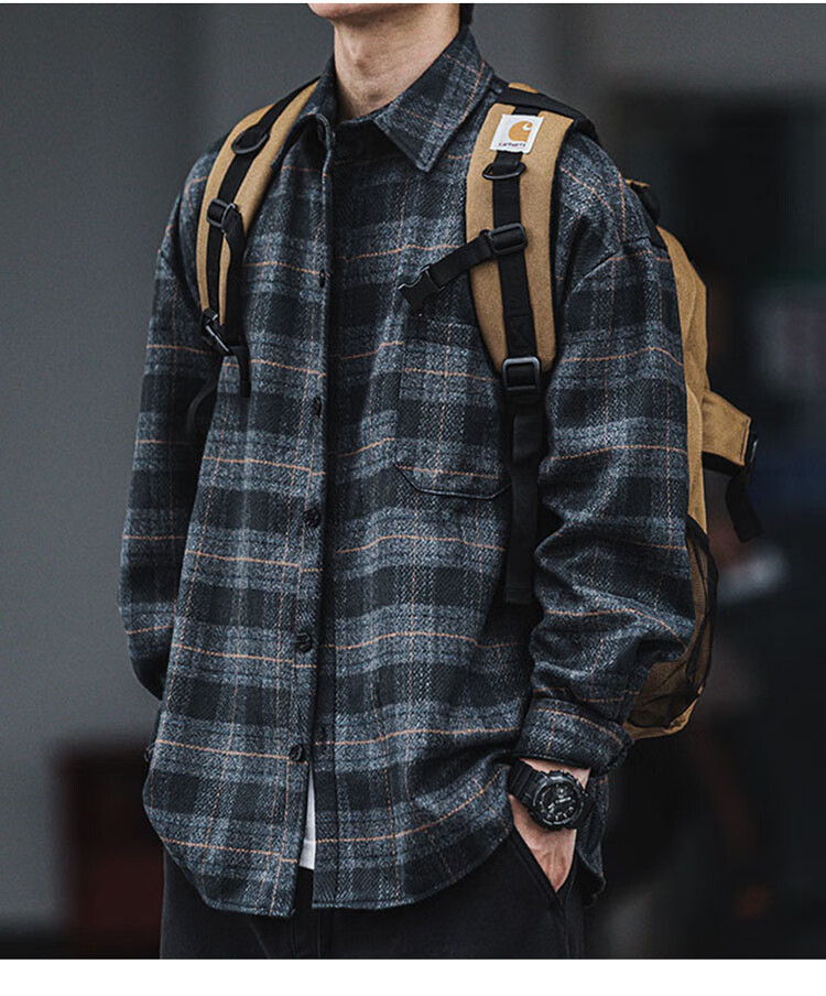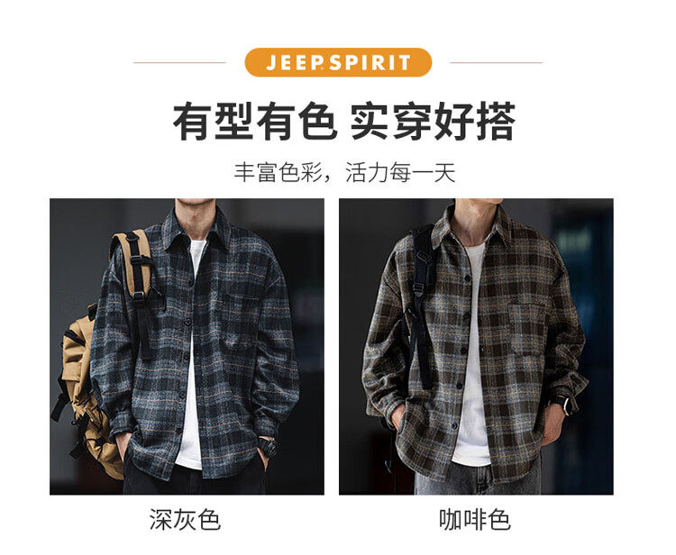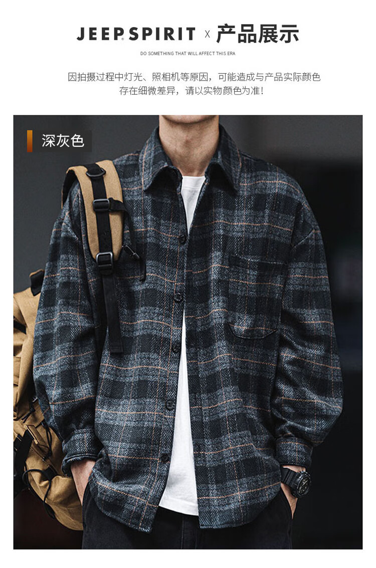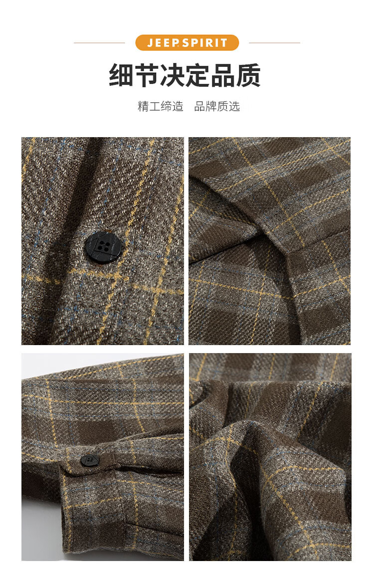 JEEP SPIRIT吉普磨毛加厚格子衬衫男秋冬季工装长袖衬衣休闲外套 深灰色 XL