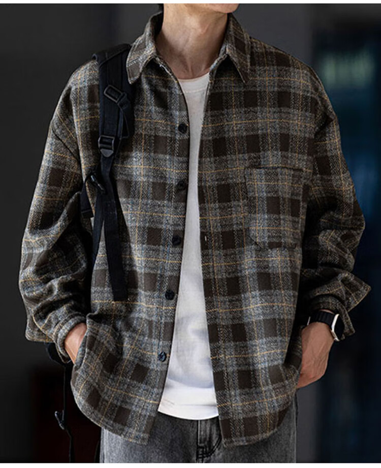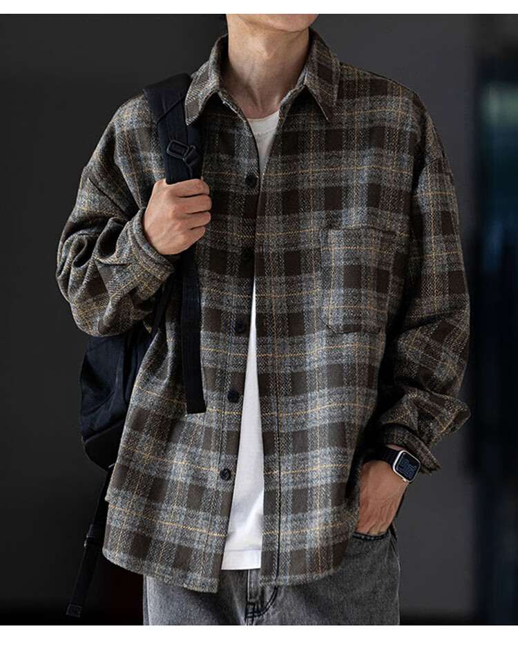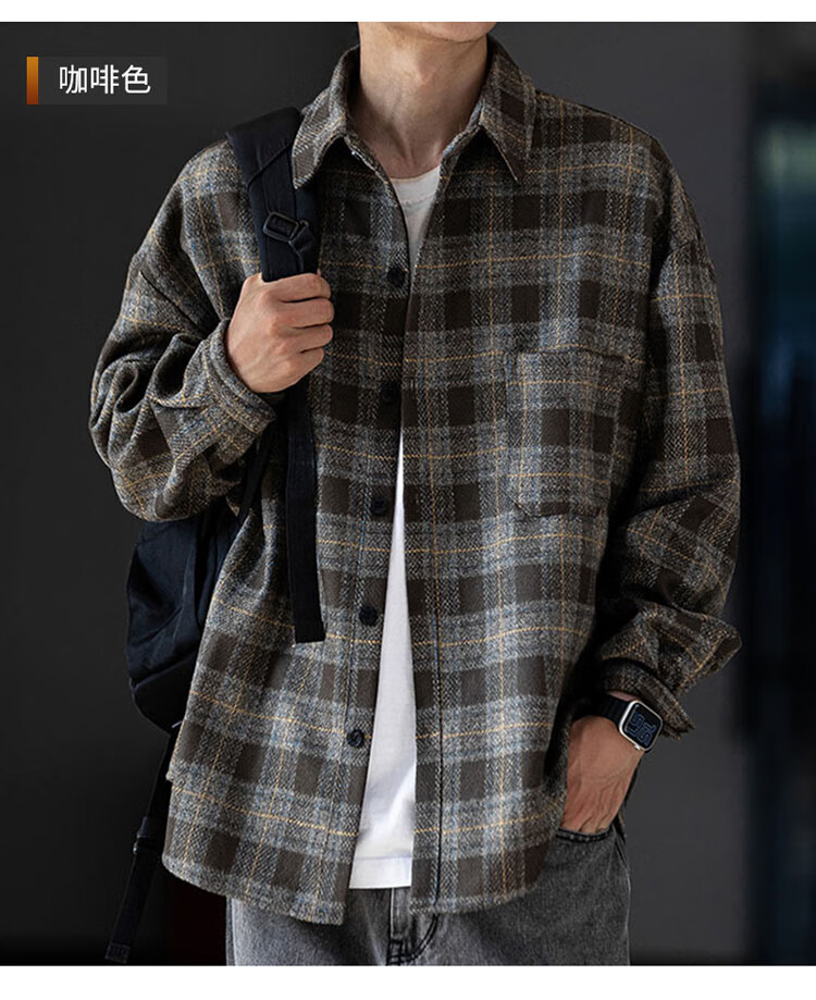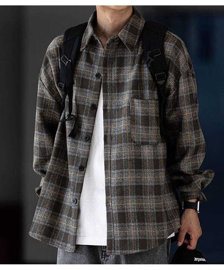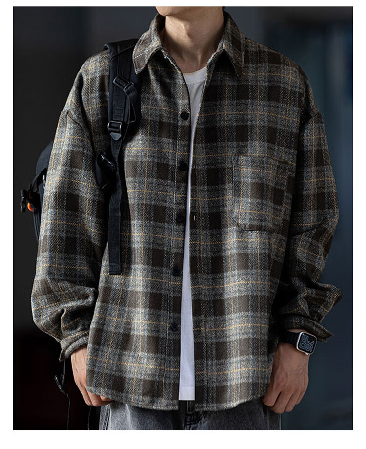 JEEP SPIRIT吉普磨毛加厚格子衬衫男秋冬季工装长袖衬衣休闲外套 深灰色 XL