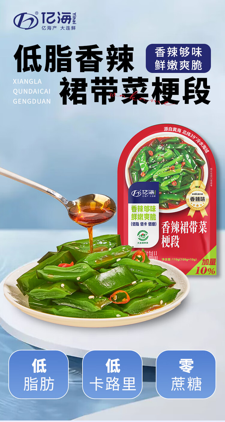 Yihai 亿海裙带菜梗香辣味110g*7袋 大连产地标认证低脂海藻沙拉海白菜