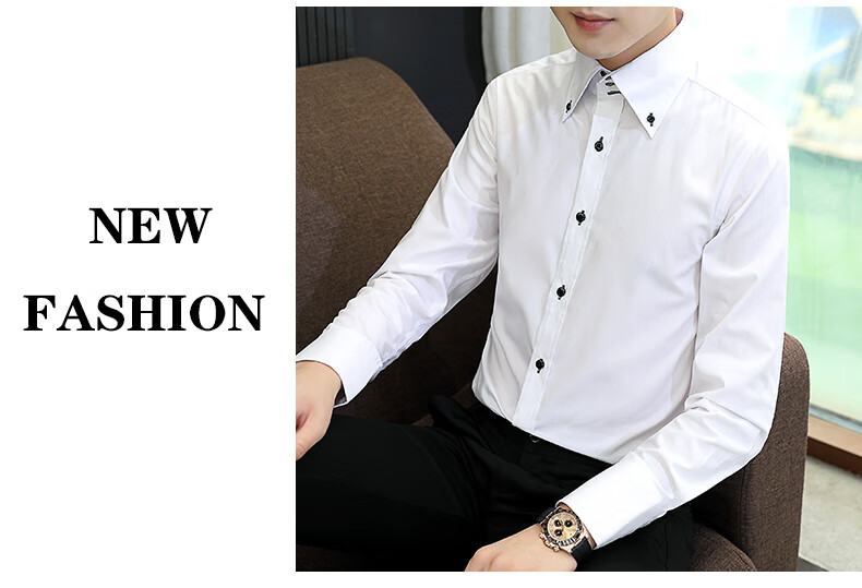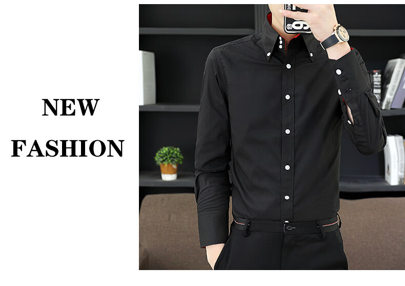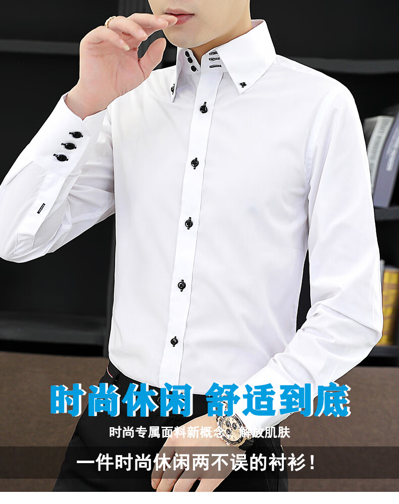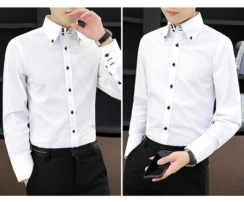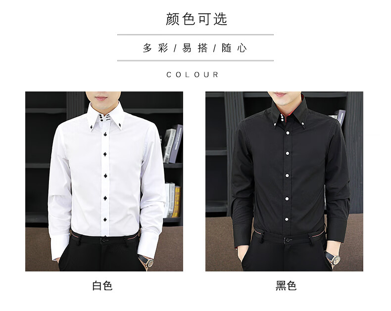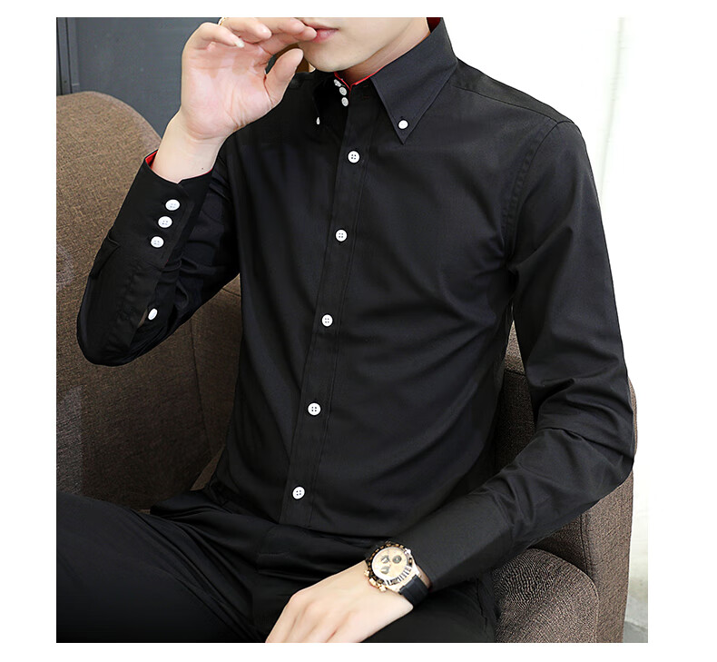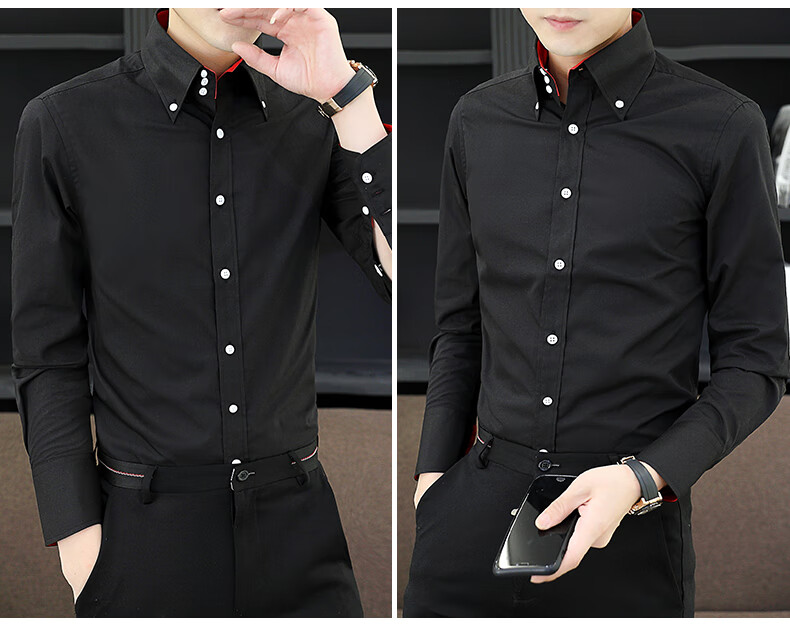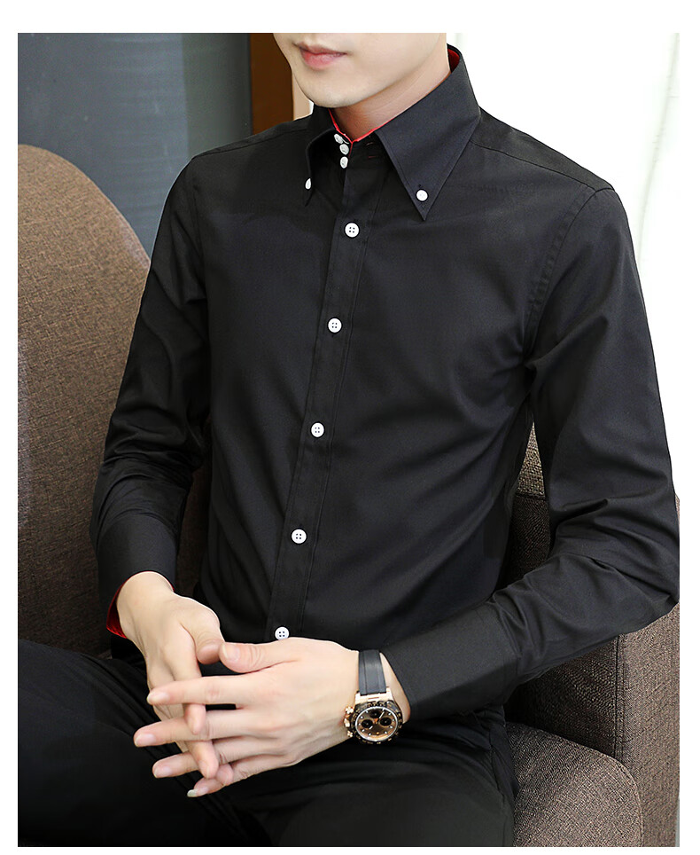 皮尔卡丹(pierre cardin)新款薄款衬衫男春秋长袖韩版修身潮衬衣商务休闲坠感弹力透气免烫 三扣黑色 2XL (推荐体重135-145左右)