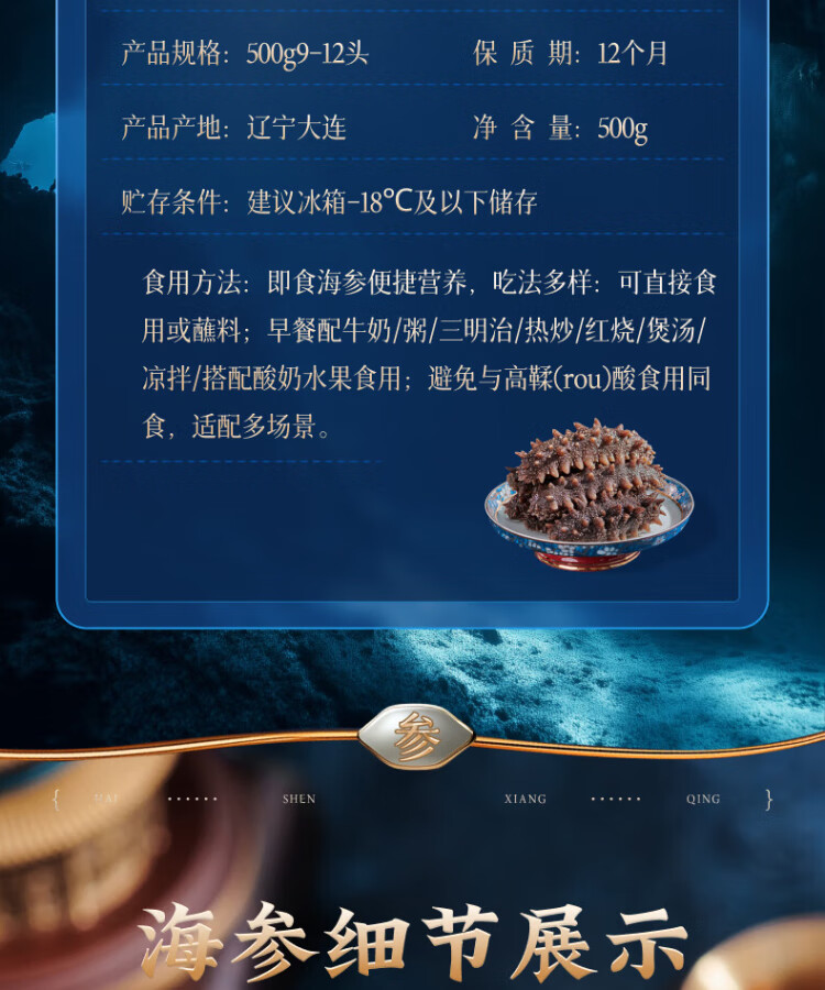 深海地带【大连产地】即食海参1斤9-12头 辽参京东自营旗舰店源头直发包邮