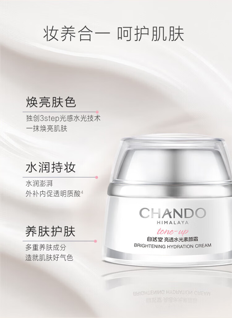 自然堂亮透水光素颜霜50g光感裸妆元气焕亮均匀亮肤