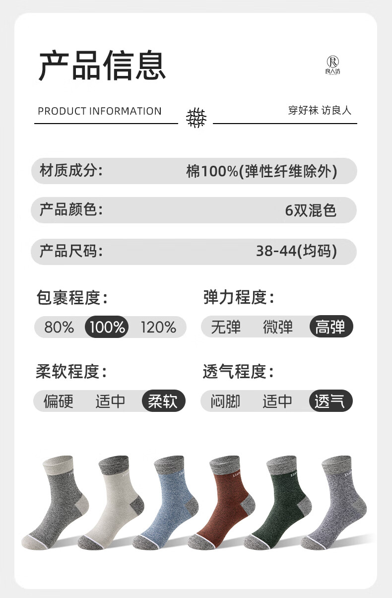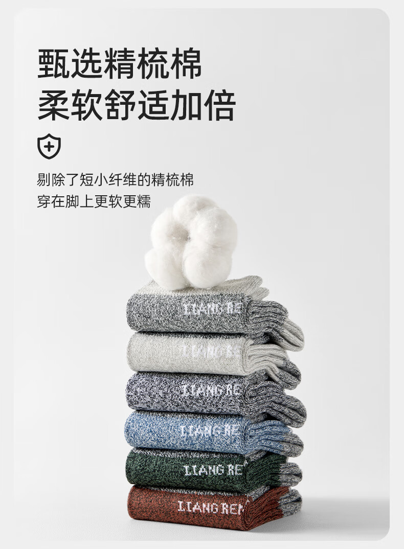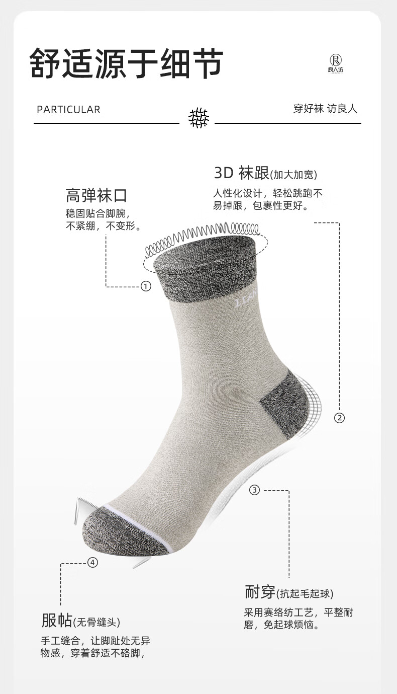 良人访袜子男秋冬100%纯棉男士抗菌防臭袜吸汗透气耐磨棉质中长筒袜子