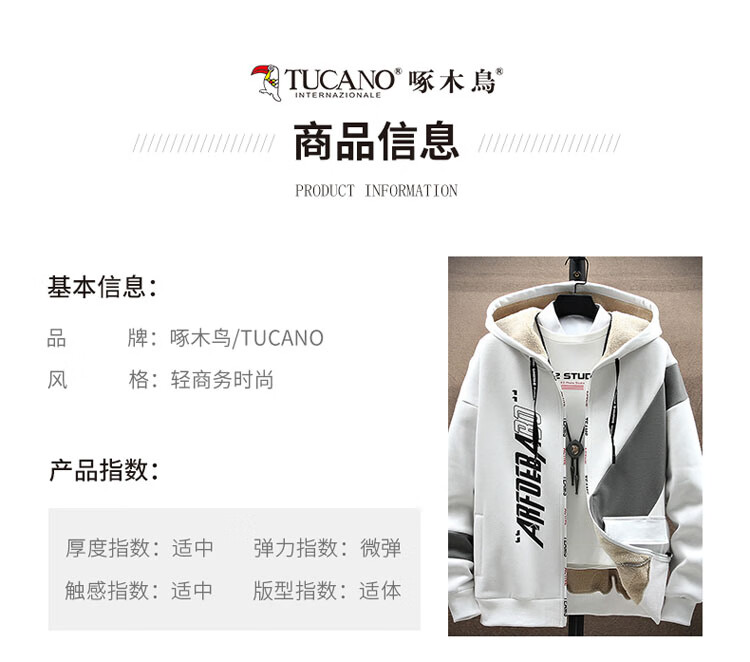 Толстовка «Дятел» (TUCANO) мужская зимняя куртка мужской кардиган плюс бархатная утепленная теплая свободная универсальная верхняя одежда мужская белая XL