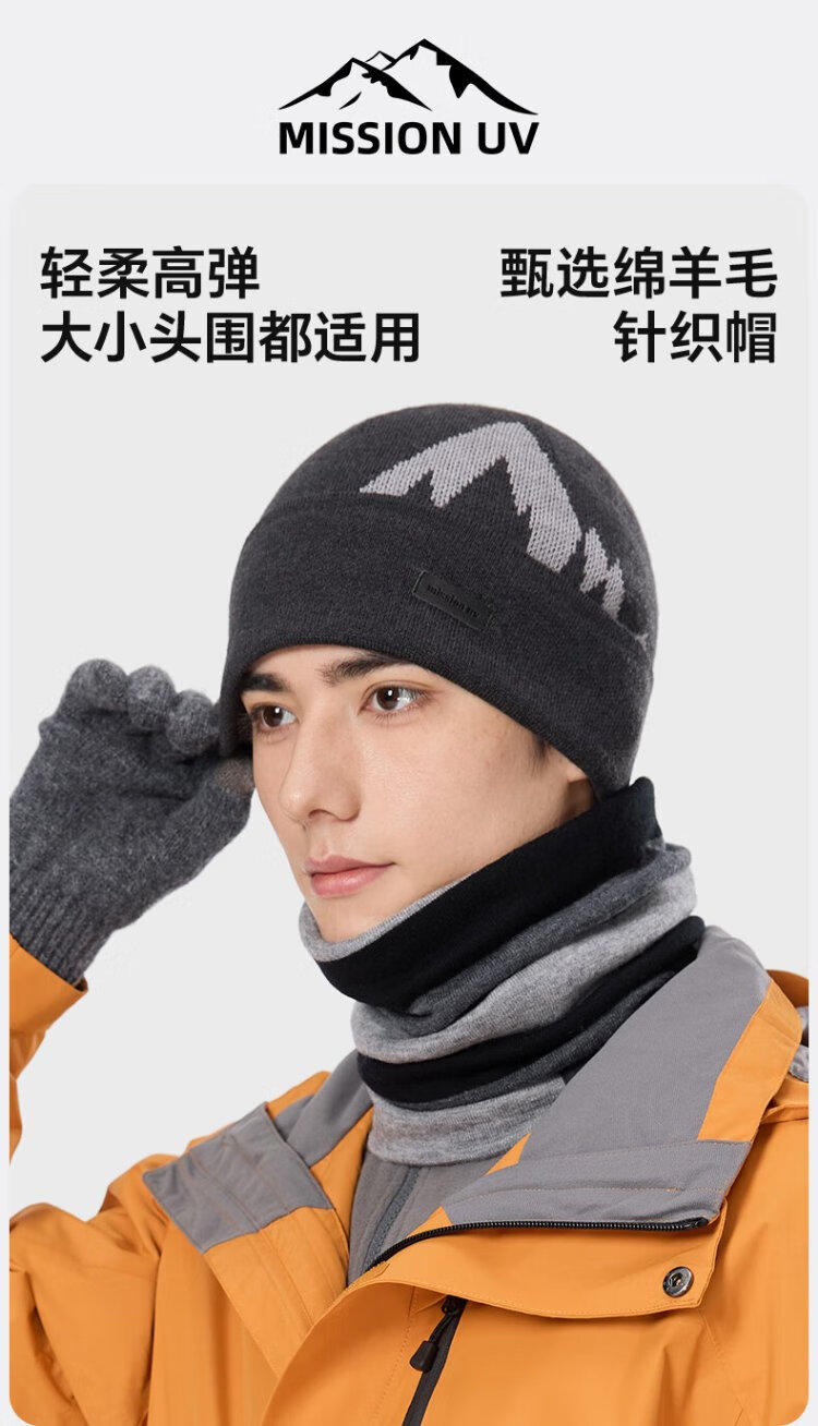 MISSION Gorro de Lana cálido de Lana UV para Hombres y Mujeres, Gorro de Punto Engrosado, Gorro para el frío, Gorro de Invierno, Gorro a Prueba de frío para Deportes al Aire Libre de otoño e Invierno
