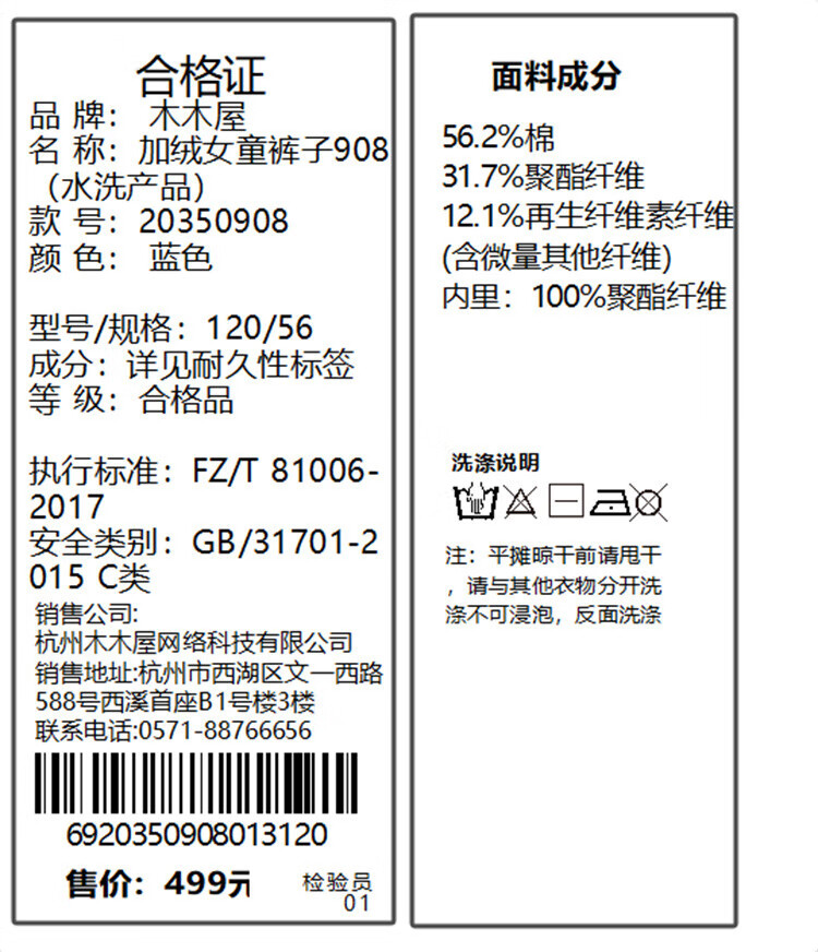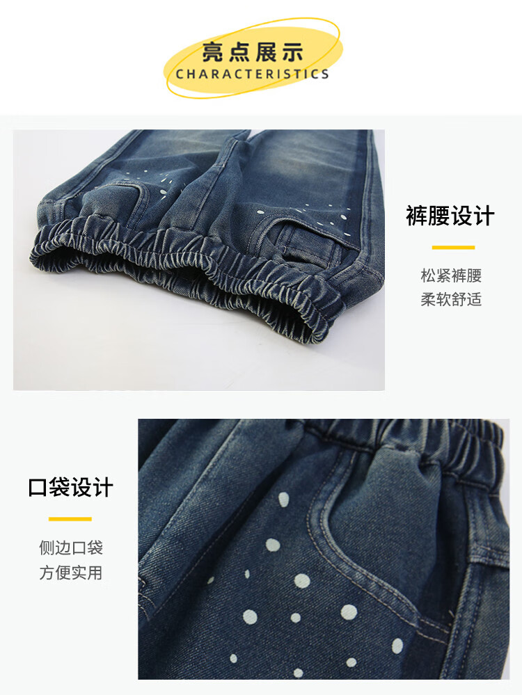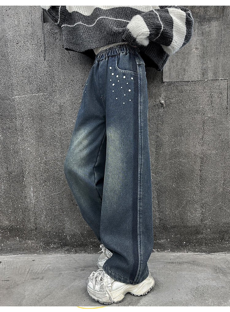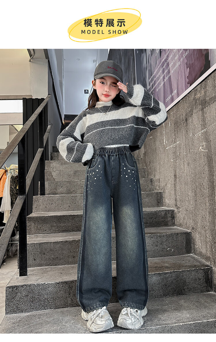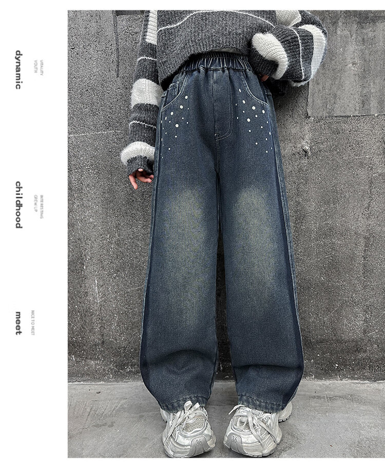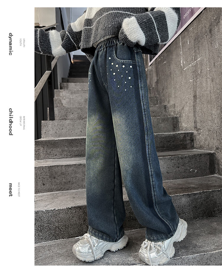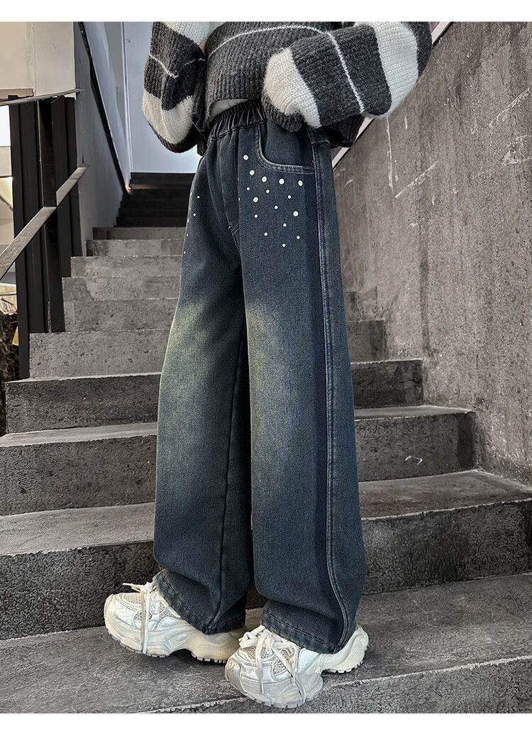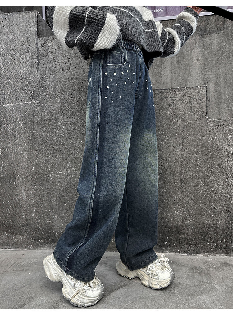 木木屋(mumuwu)女童加绒加厚牛仔裤秋冬款儿童中大童宽松休闲裤女孩保暖直筒裤子
