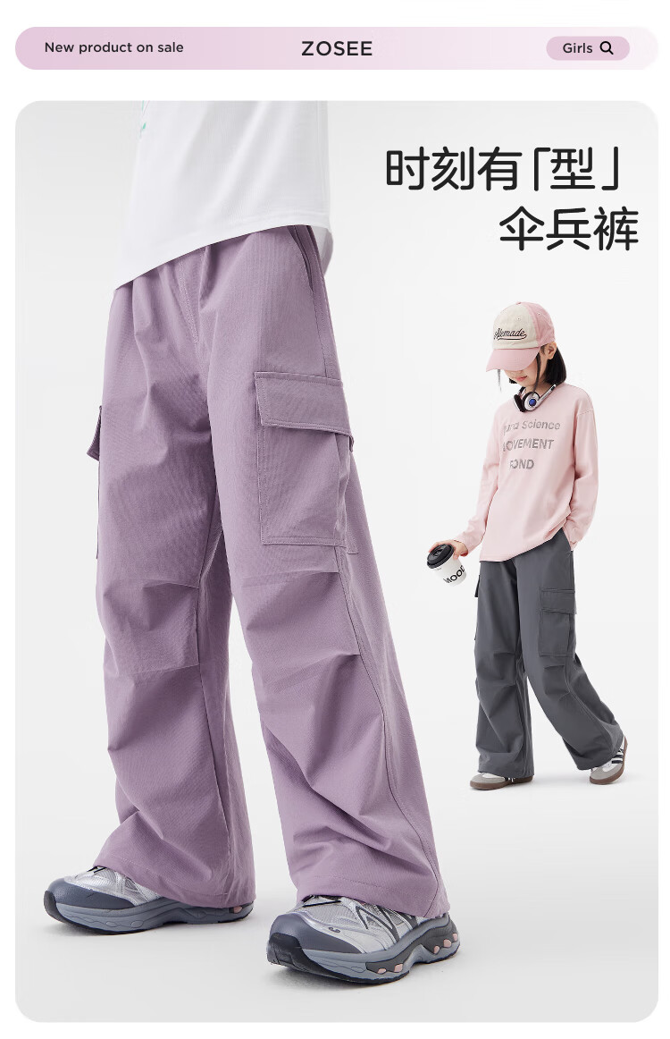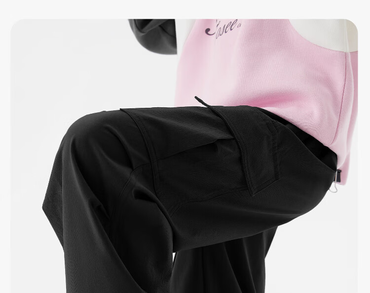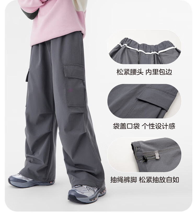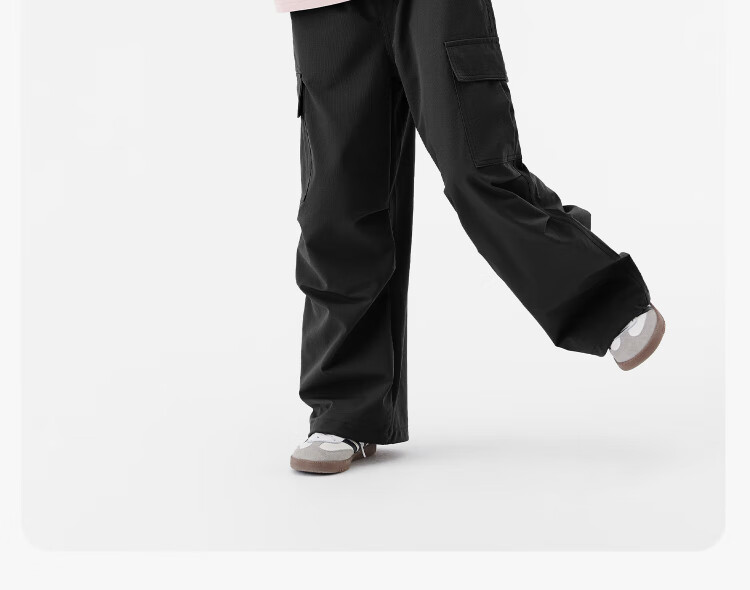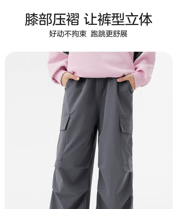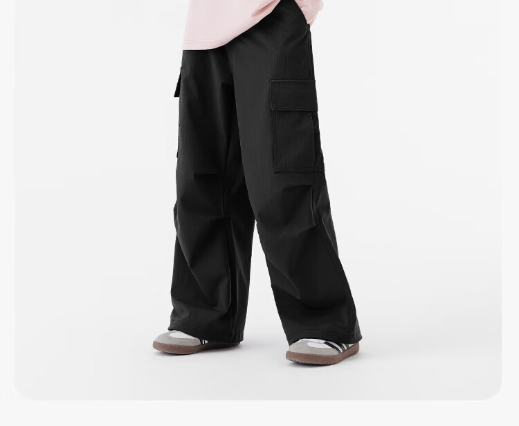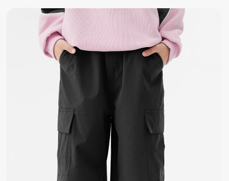 左西童装女童裤子加绒工装裤2025新款儿童户外耐磨伞兵裤 黑色 160