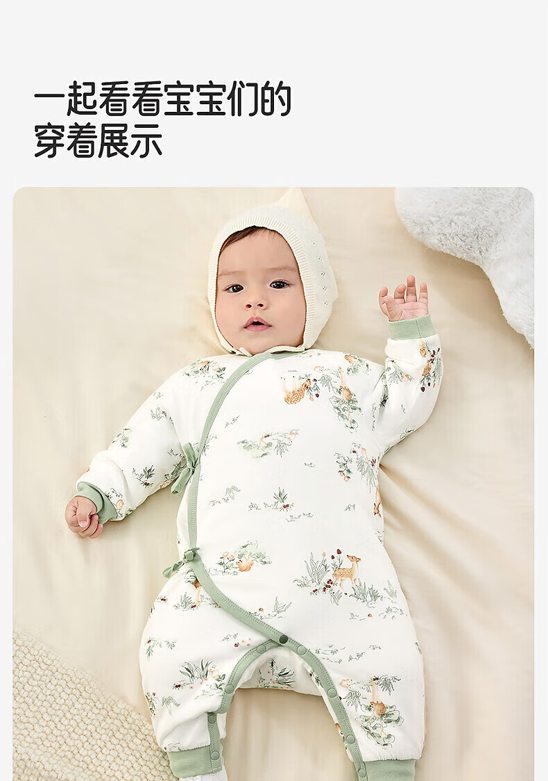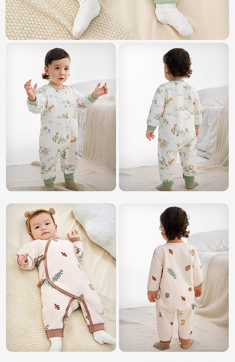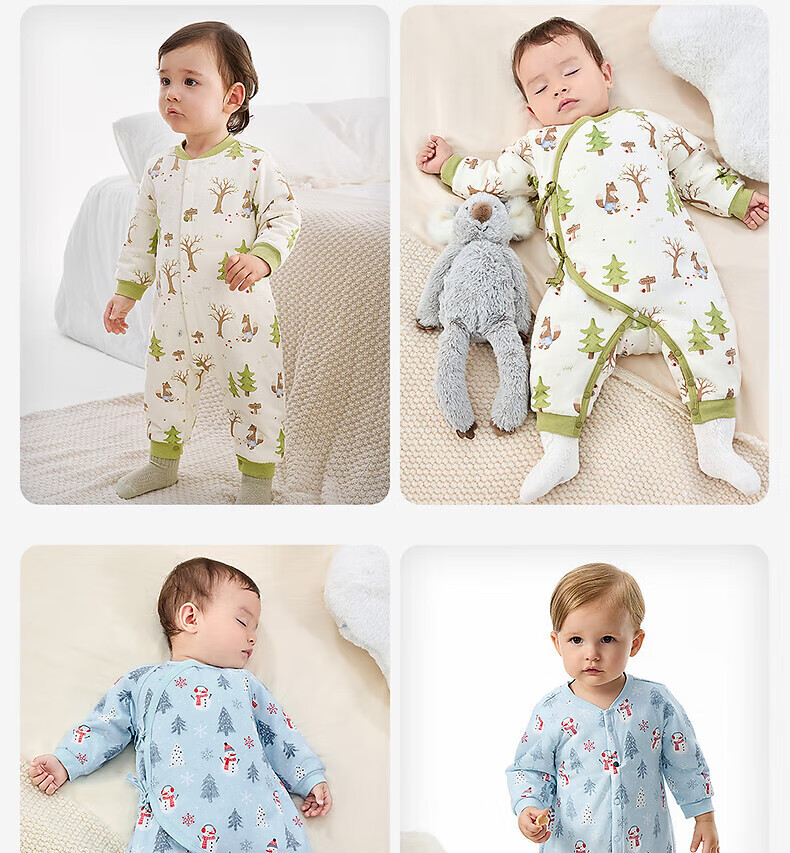 YEEHOO baby quilted jumpsuit autumn and winter thickened and warm newborn baby winter baby clothes
