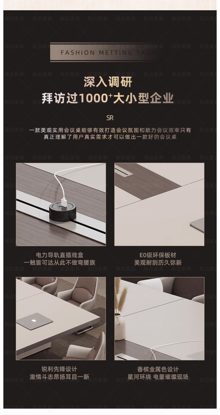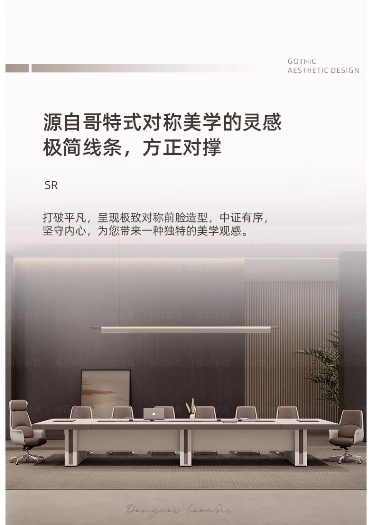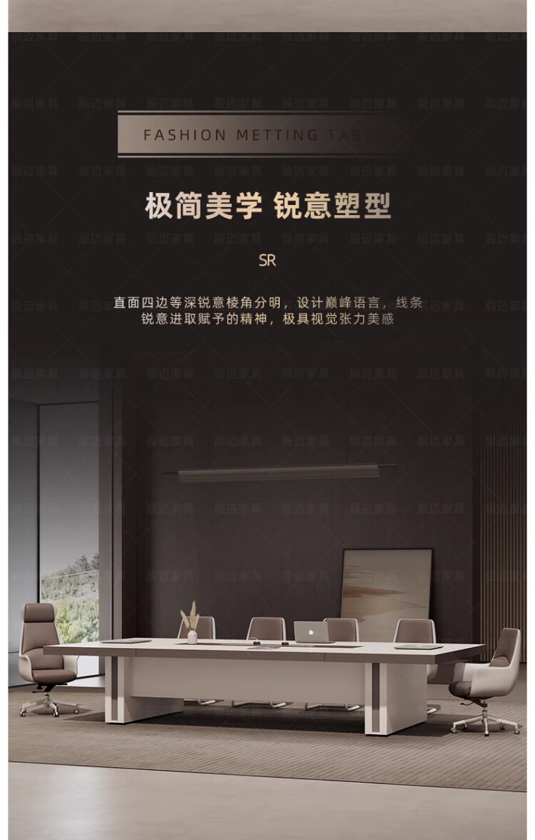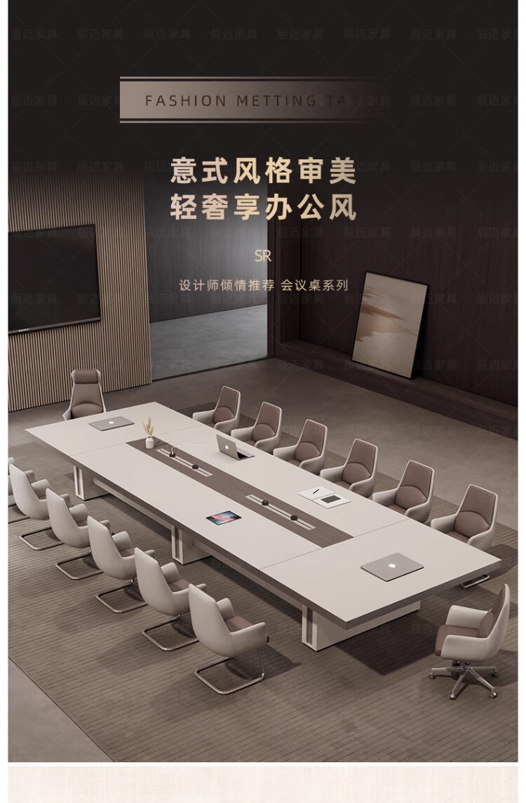 Baishengfeng Büro-Konferenztisch, langer Tisch, leichter Luxus-High-End-großer, verdickter Konferenzraum-Tisch und Stuhl-Kombination, moderner, einfacher langer Tisch