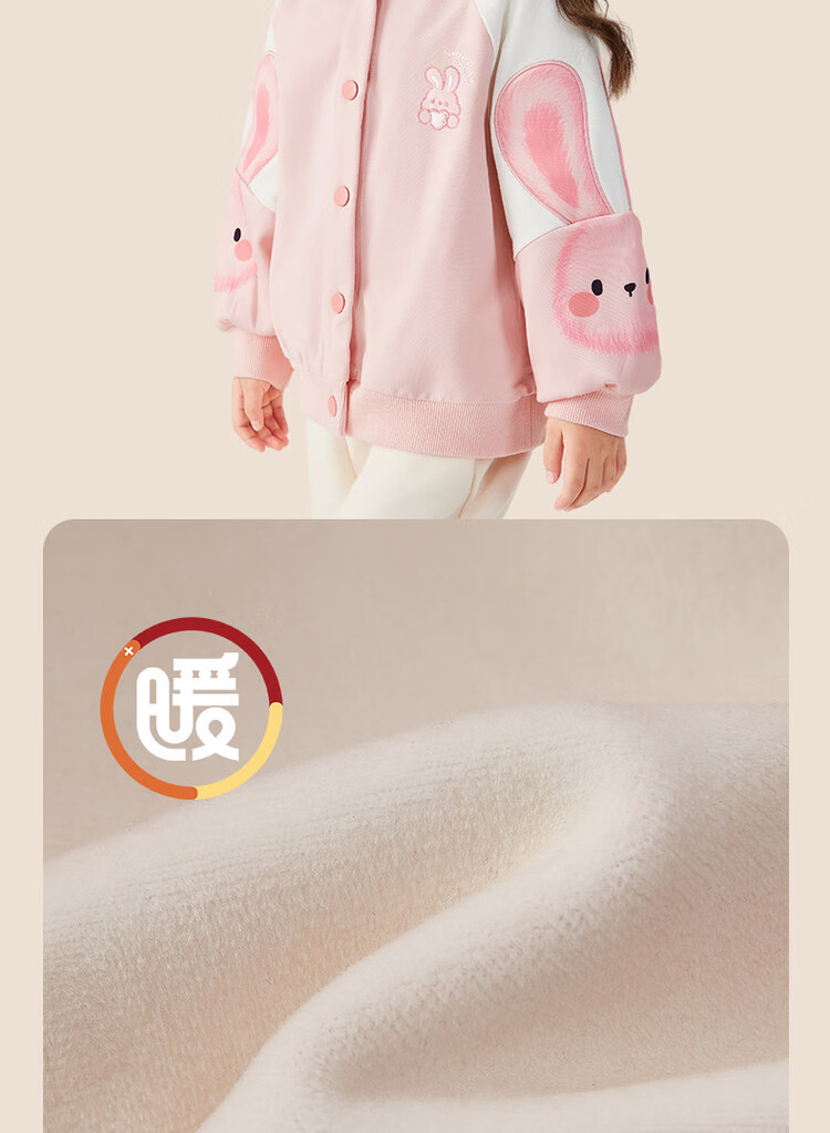 JELLYBABY童装女童加绒外套秋冬儿童上衣开衫冬季女宝宝棒球服冬季洋气