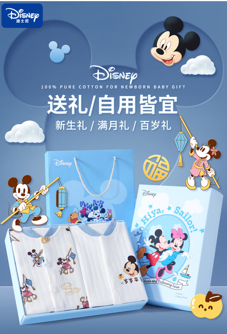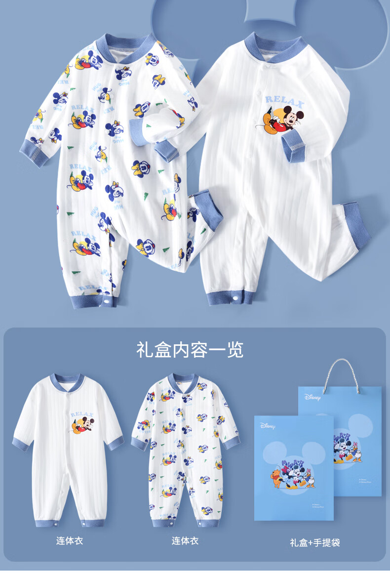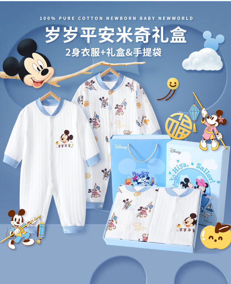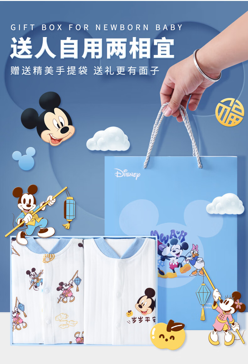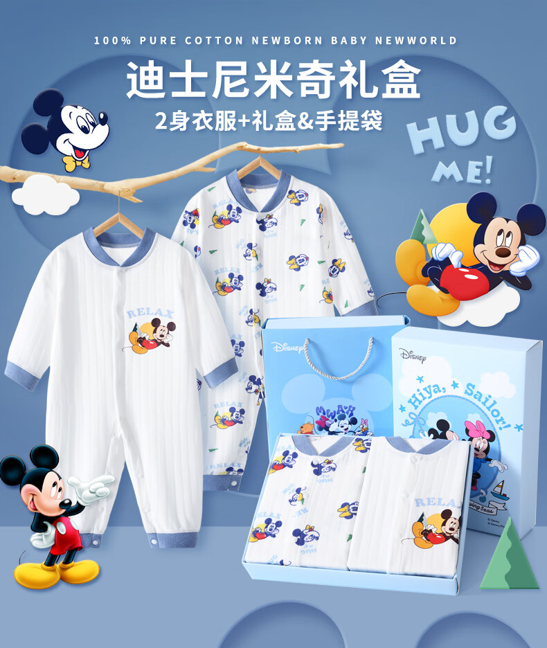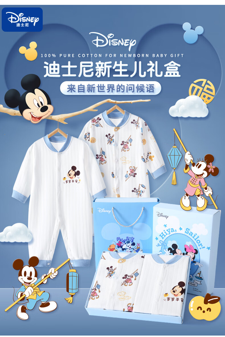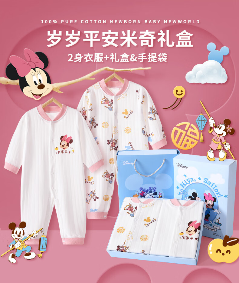 迪士尼(Disney)婴儿衣服纯棉秋冬0-6个月新生儿礼盒套装宝宝满月百天礼物a类棉衣