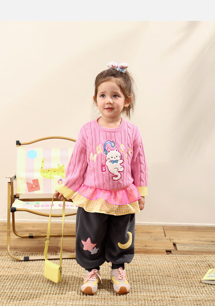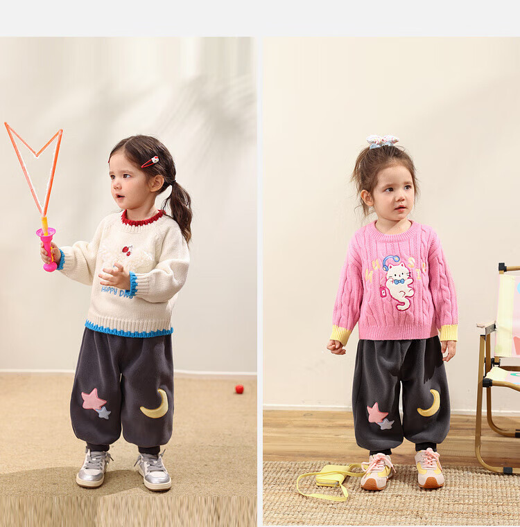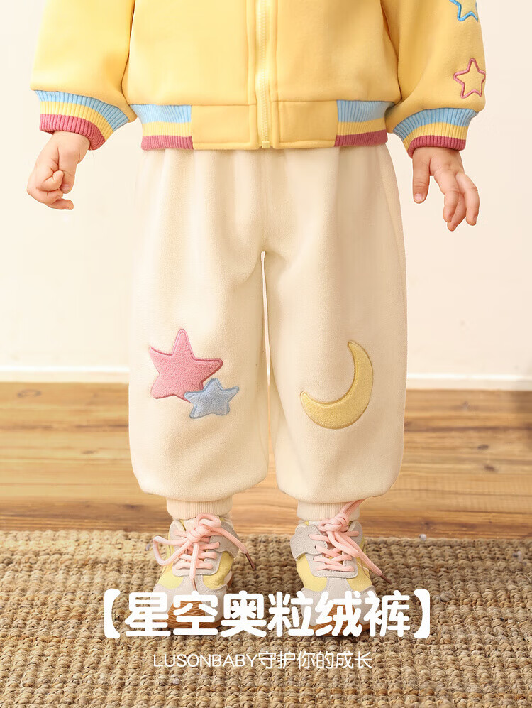 LUSON小o爸女婴童 女宝宝摇粒绒裤2025冬季婴儿保暖卫裤加绒休闲运动裤