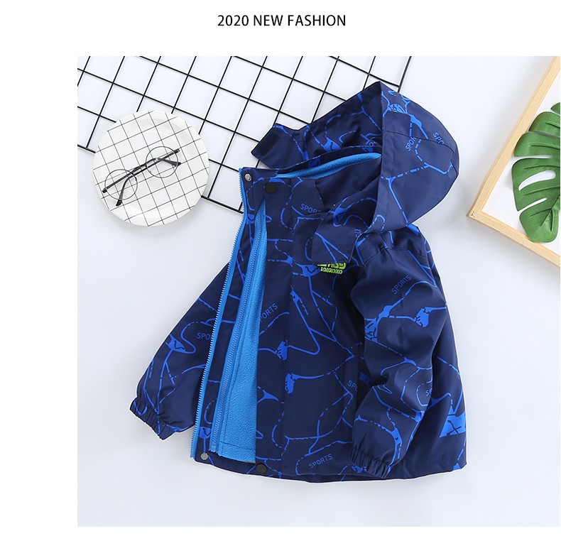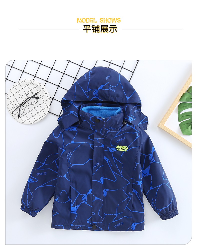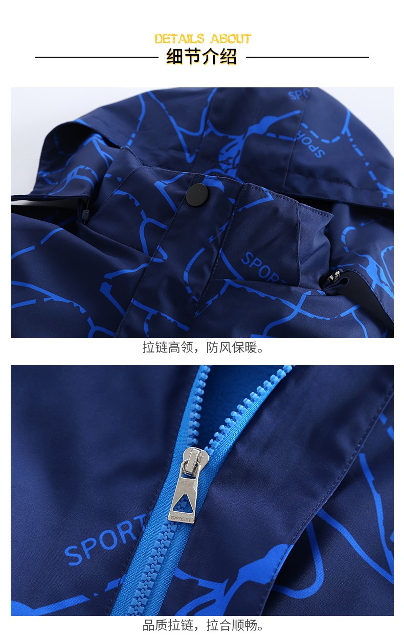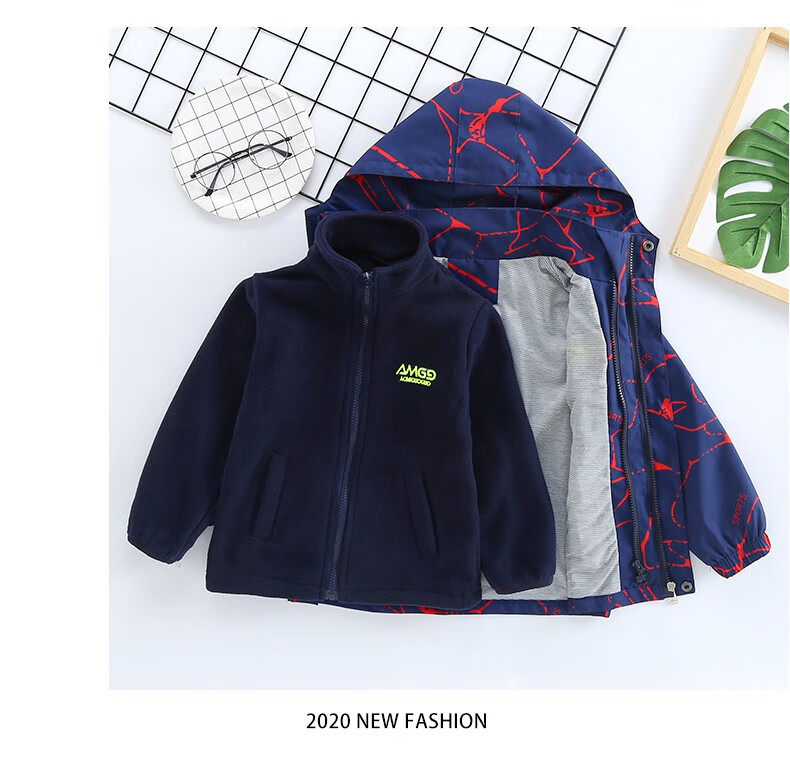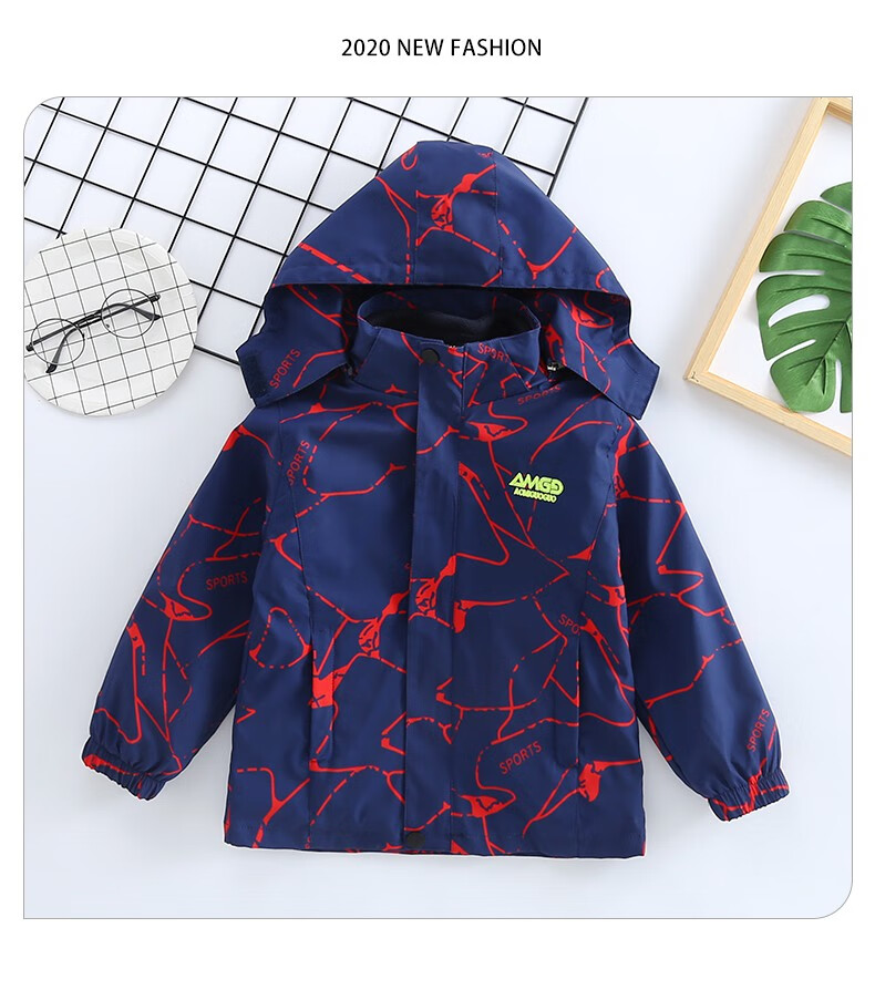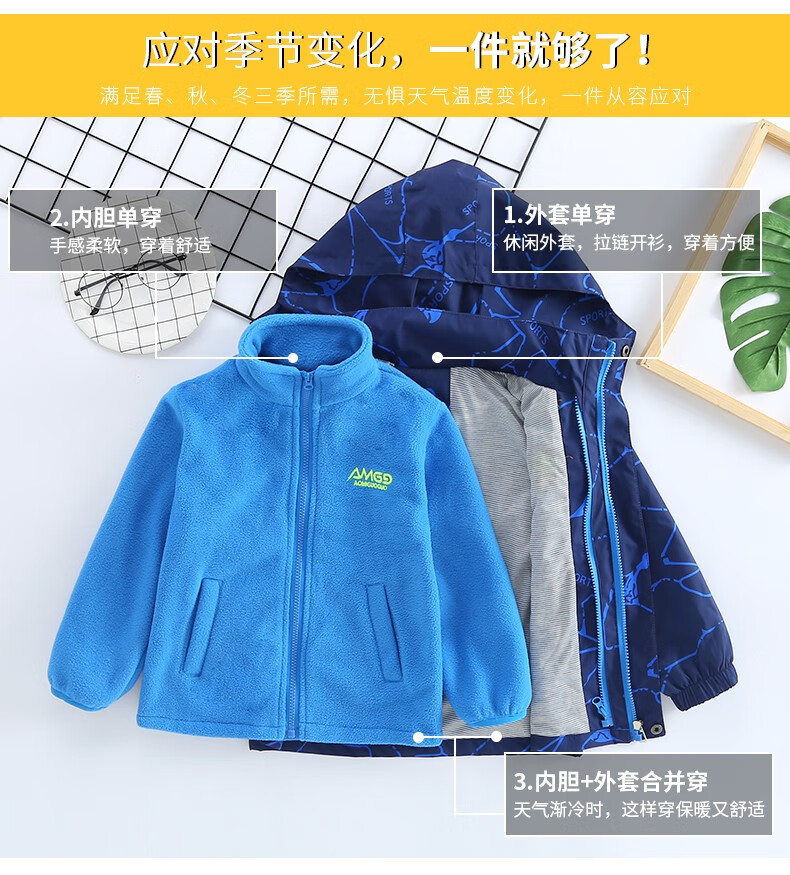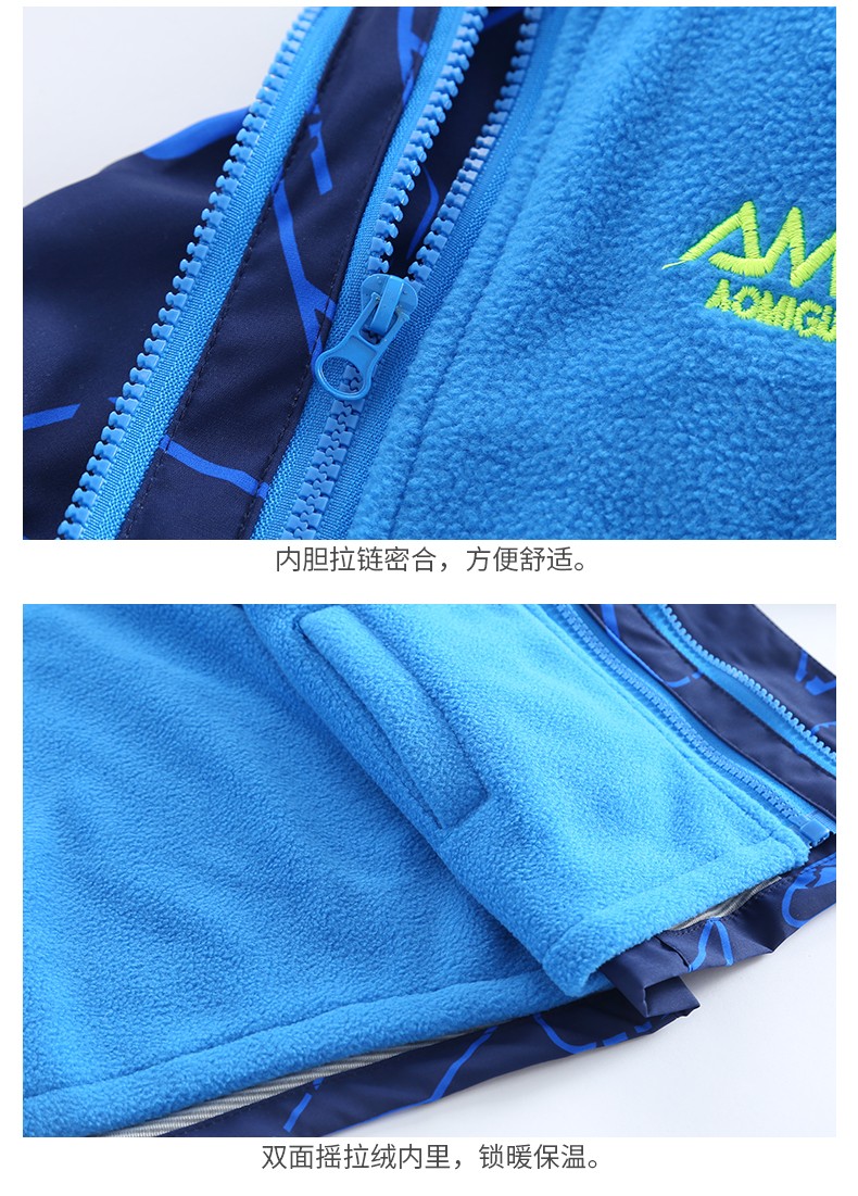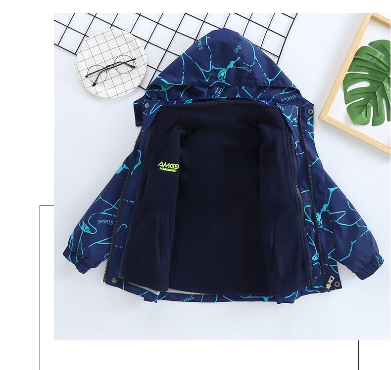 开米熊童装男童春秋装外套男孩秋冬季可拆卸加绒儿童冲锋衣三合一两件套 绿色 150 码建议身高140cm左右
